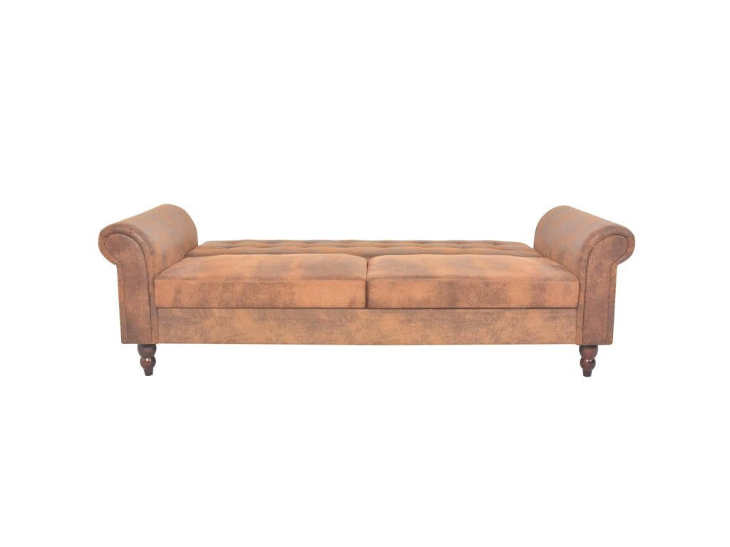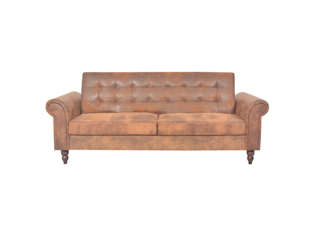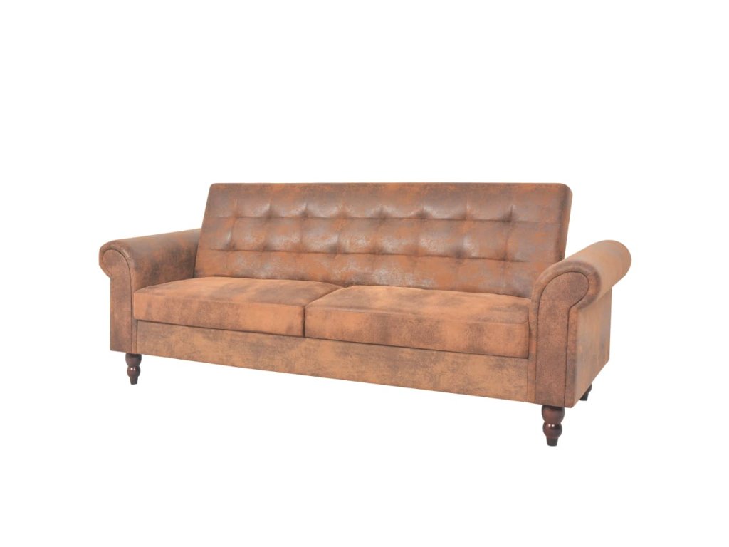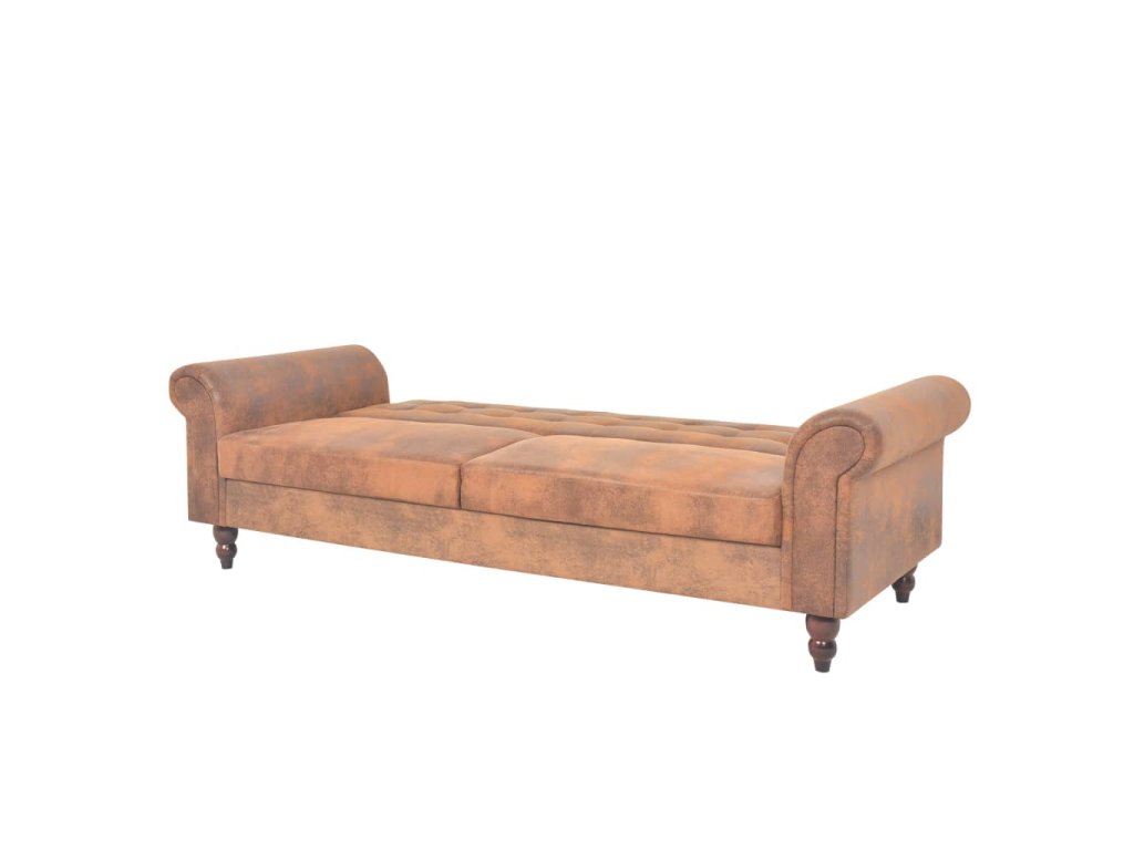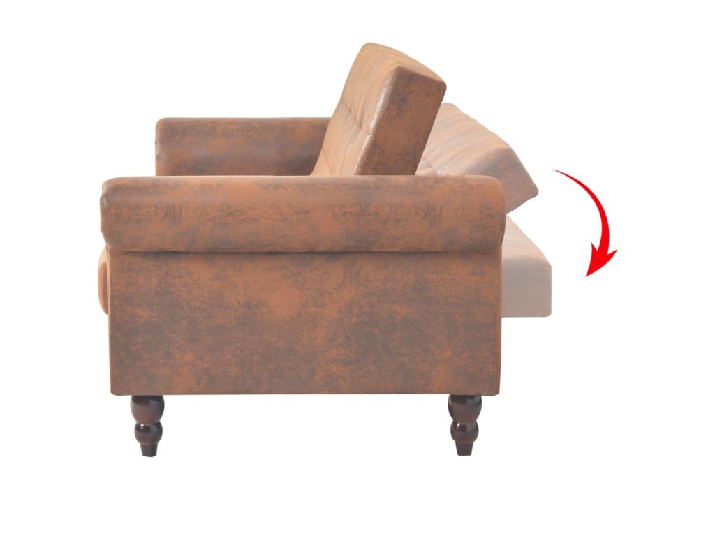 Konvertibilní 2místná pohovka s područkami umělý semiš hnědá 245584