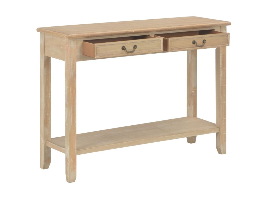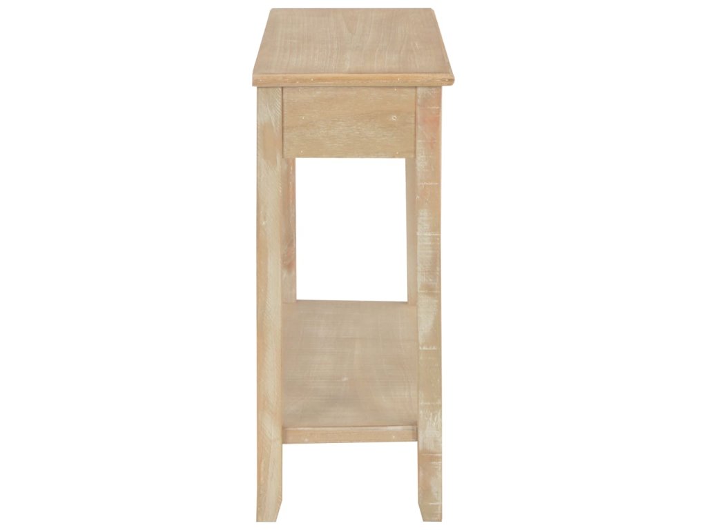 Stolek má robustní desku z odolné MDF, na níž si můžete vystavit dekorativní předměty, jako jsou mísy s ovocem či vázy. Nohy z masivní borovice zaručují jeho stabilitu a dlouhou životnost. Stolek dále disponuje 2 prostornými zásuvkami pro uložení všelijakých menších předmětů, které zde budete mít hezky uspořádané a po ruce. Další prostor vám nabídne také polička, kam si můžete uložit boty a jiné věci.