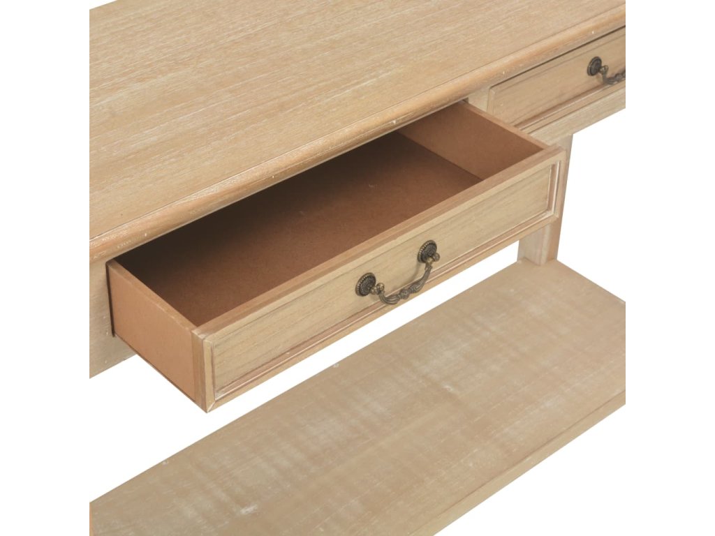 Vneste do svého interiéru trochu elegance s naším klasickým konzolovým stolkem! Je vyroben z MDF, masivního borového dřeva a unikátní dýhy z pavlovnie a skvěle doplní zařízení vaší domácnosti. Lze ho rovněž použít jako odkládací stolek nebo příborník.