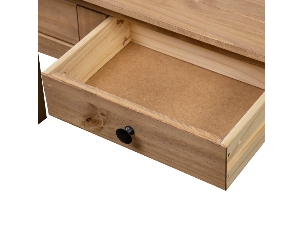 Konzolový stolek je odborně vyrobený z masivního borovicového dřeva a je velmi robustní a odolný. Má kompaktní design, takže najdete pro váš konzolový stolek místo téměř kdekoli. Robustní horní deska je ideální pro vystavení dekorativních předmětů, fotorámečků nebo pokojových rostlin. 2 zásuvky poskytují další prostor pro uložení drobných předmětů.