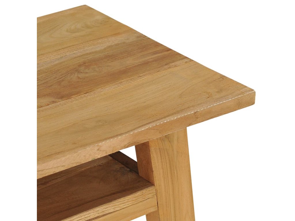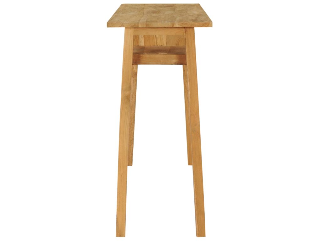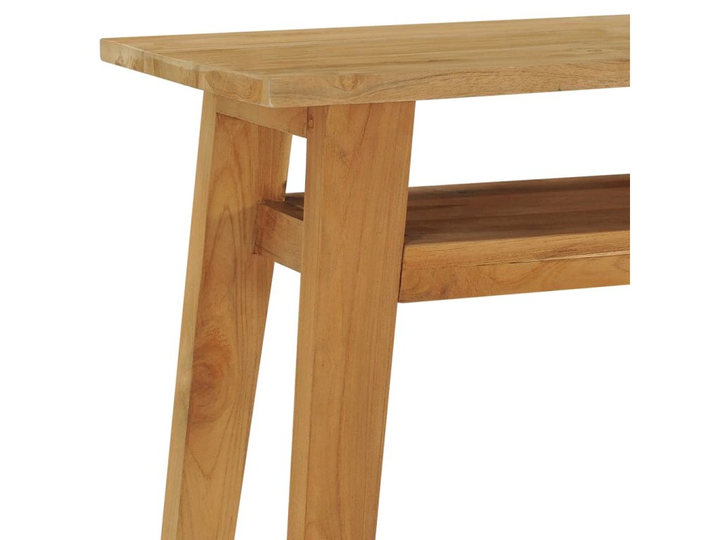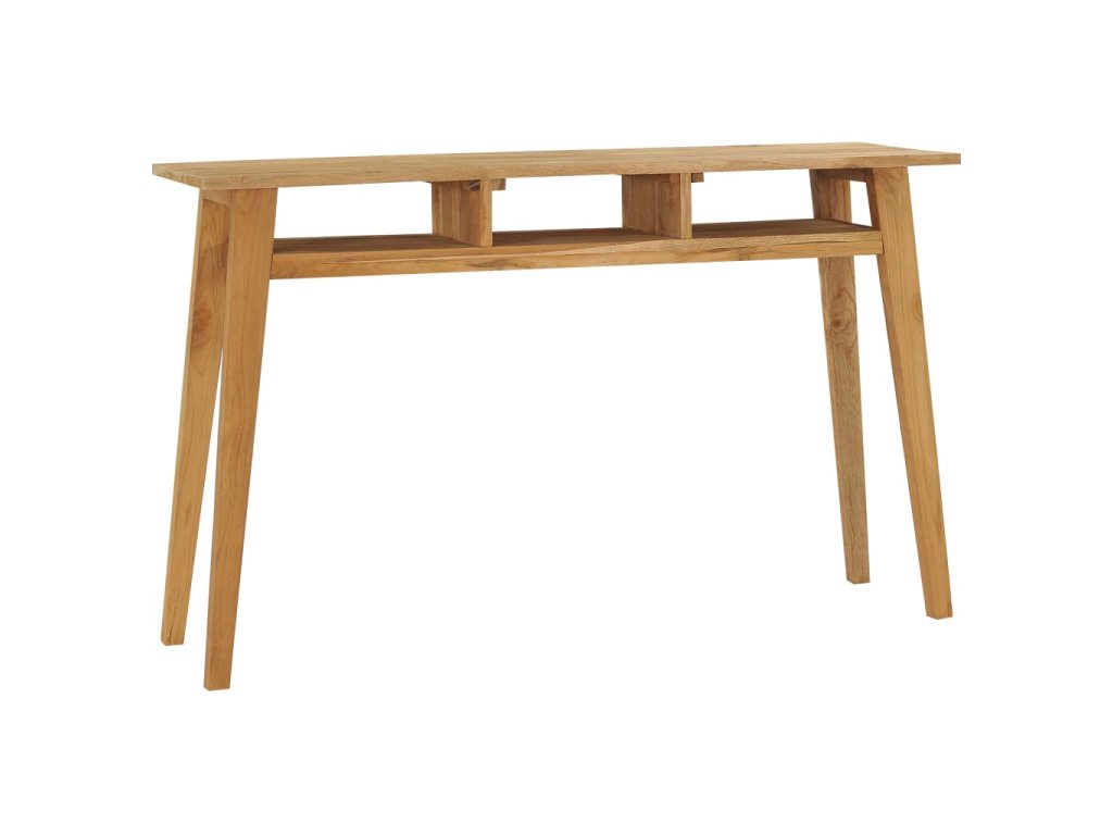 Stolek do předsíně v přírodní barvě je vyrobený z masivního teakového dřeva s přírodní povrchovou úpravou. Má velmi dlouhou životnost a je odolný vůči opotřebení. Robustní deska z tvrdého dřeva vám nabízí prostor pro odložení ovocných košů, fotorámečků nebo jiných dekorativních předmětů. Tento dřevěný stůl, vybavený 3 otevřenými policemi, poskytuje dostatek prostoru pro uspořádání menších předmětů na dosah ruky.