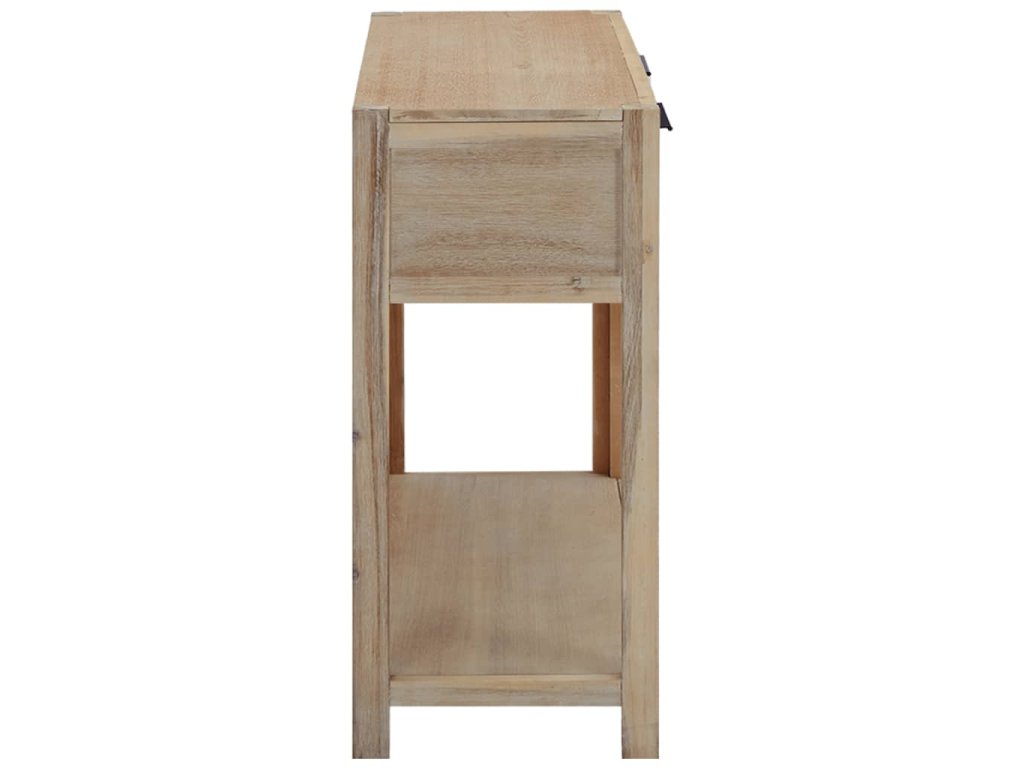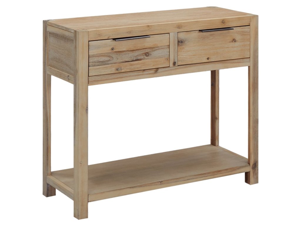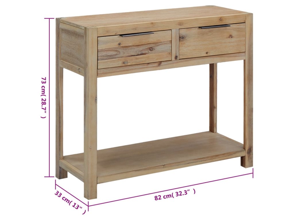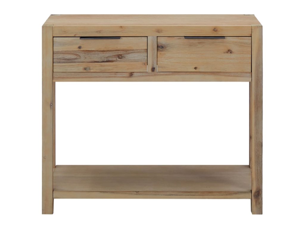 Tento konzolový stolek je vyroben z masivního akáciového dřeva s kartáčovanou povrchovou úpravou, MDF a akáciové dýhy, takže je robustní a stabilní. Konzolový stolek má robustní desku, na kterou můžete vystavit dekorativní předměty, jakou jsou mísy s ovocem či vázy. Polička a 2 zásuvky poskytují spoustu místa pro přehledné uspořádání nejrůznějších menších věcí, které tak budete mít neustále po ruce. Tento produkt je třeba nejdříve sestavit.