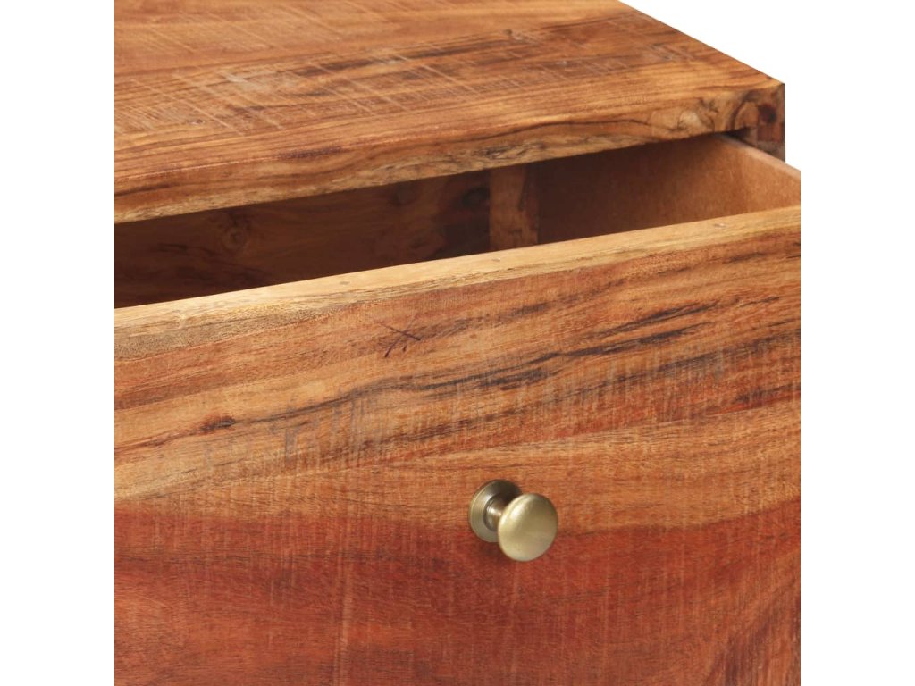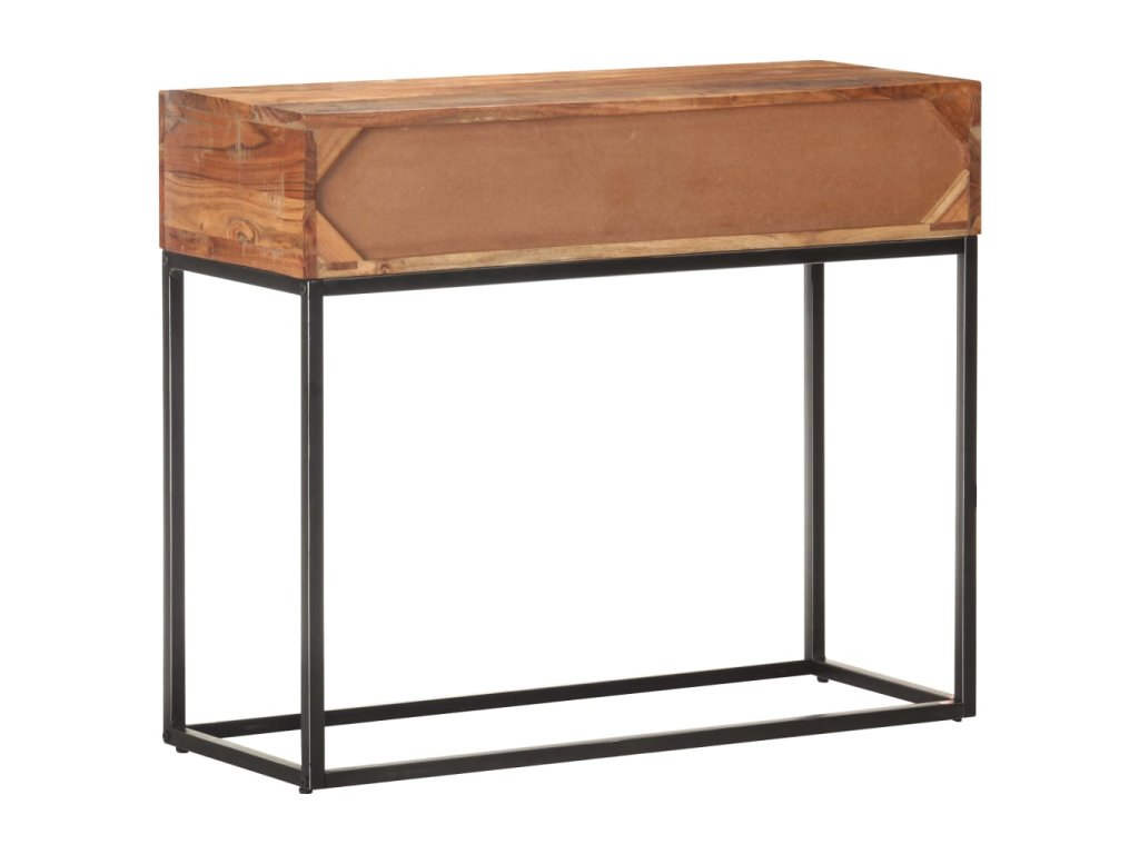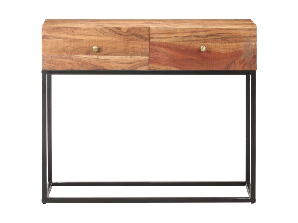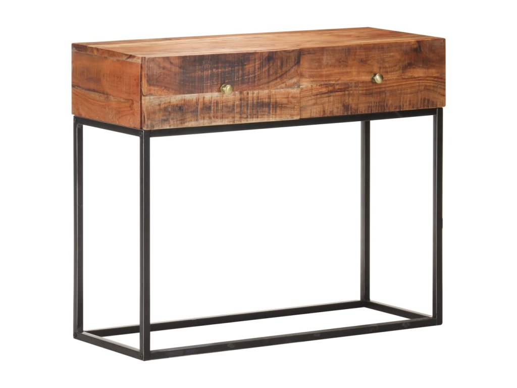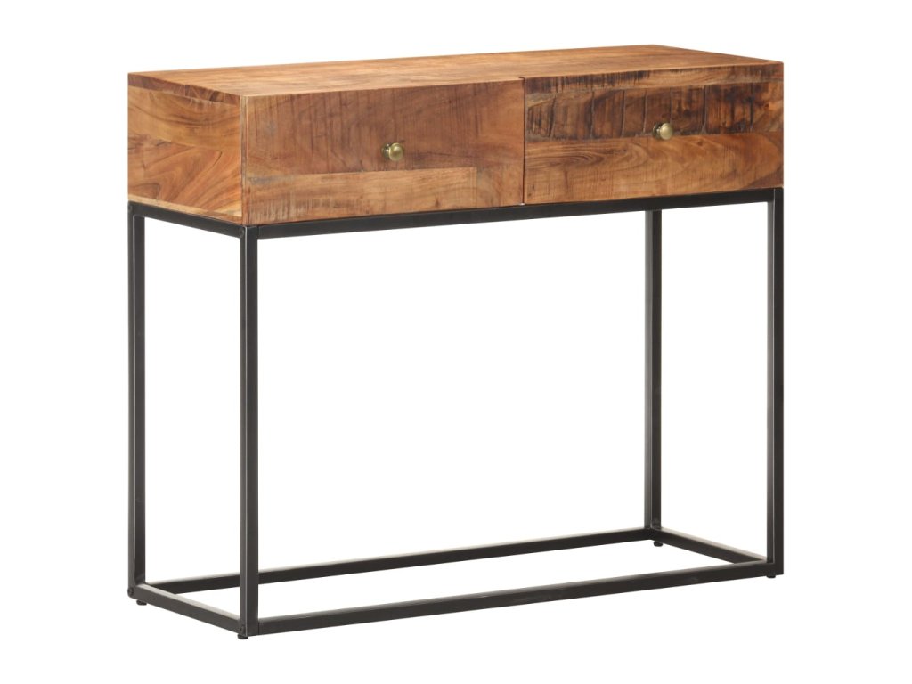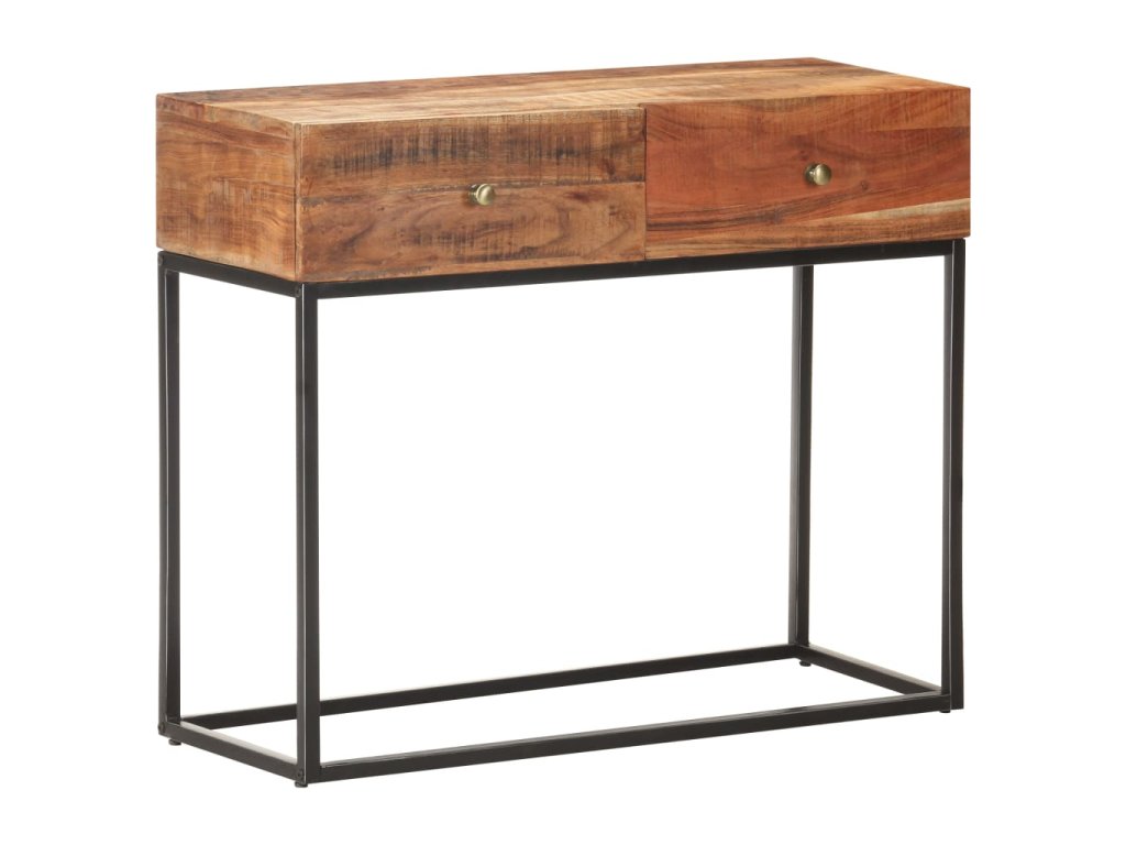 Stolek do předsíně je vyrobený z masivního hrubého akáciového dřeva, je tedy velice stabilní a odolný. Zručné zpracování a překrásná kresba dřeva dávají každému kusu nábytku jedinečný charakter, kterým se lehce liší od všech ostatních. Konzolový stolek má 2 zásuvky, takže vám poskytne spoustu místa pro přehledné uspořádání nejrůznějších věcí. A co víc, železná základna mu přidává na robustnosti.