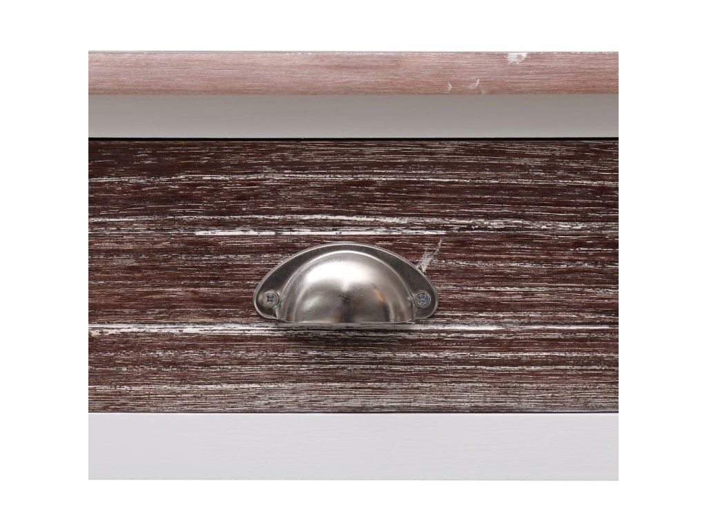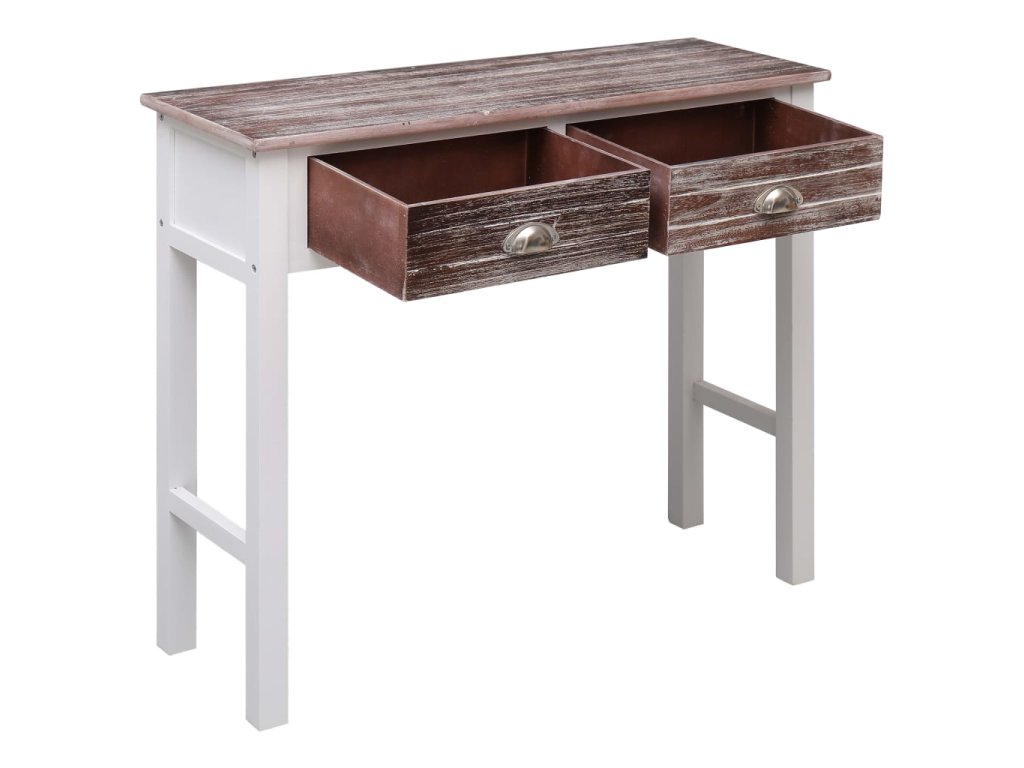 Stolek z kvalitního dřeva pavlovnie a topolu je zhotovený s důrazem na dlouhou životnost. Snadno ho očistíte vlhkým hadříkem. Má dvě zásuvky, v nichž najdete spoustu úložného prostoru pro organizované ukládání menších věcí, které chcete mít na dosah ruky.