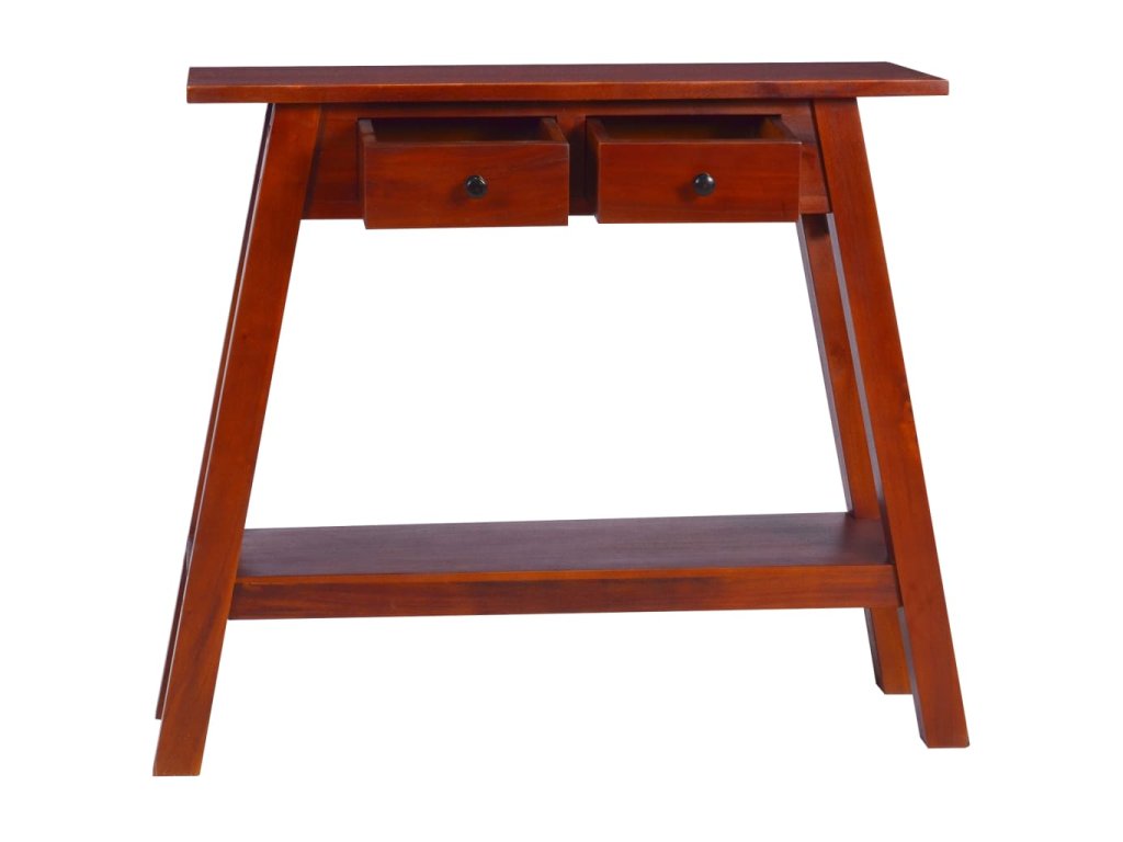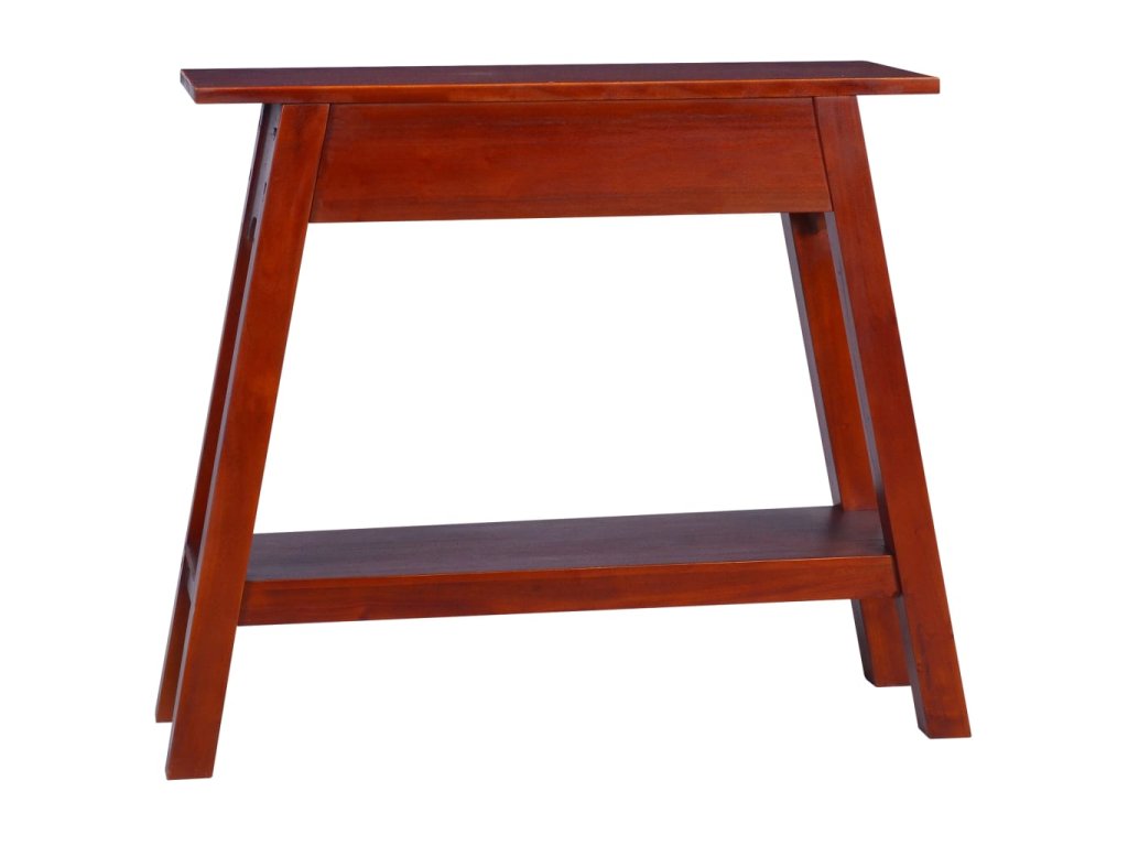 Tento stolek do předsíně je ručně vyrobený z masivního mahagonového dřeva, takže je stabilní a má dlouhou životnost. Mahagon s přímou a rovnoměrnou kresbou je relativně bez dutinek a výborně vzdoruje hnilobě. Jeho červenohnědá barva časem ztmavne a po vyleštění získá načervenalý lesk. Řemeslné zpracování a krásná kresba dřeva dávají každému kusu jedinečný charakter, a proto je každý kus skutečný unikát. Tento konzolový stolek může také sloužit jako úložný prostor pro uložení důležitých potřeb přehledně a na dosah ruky.