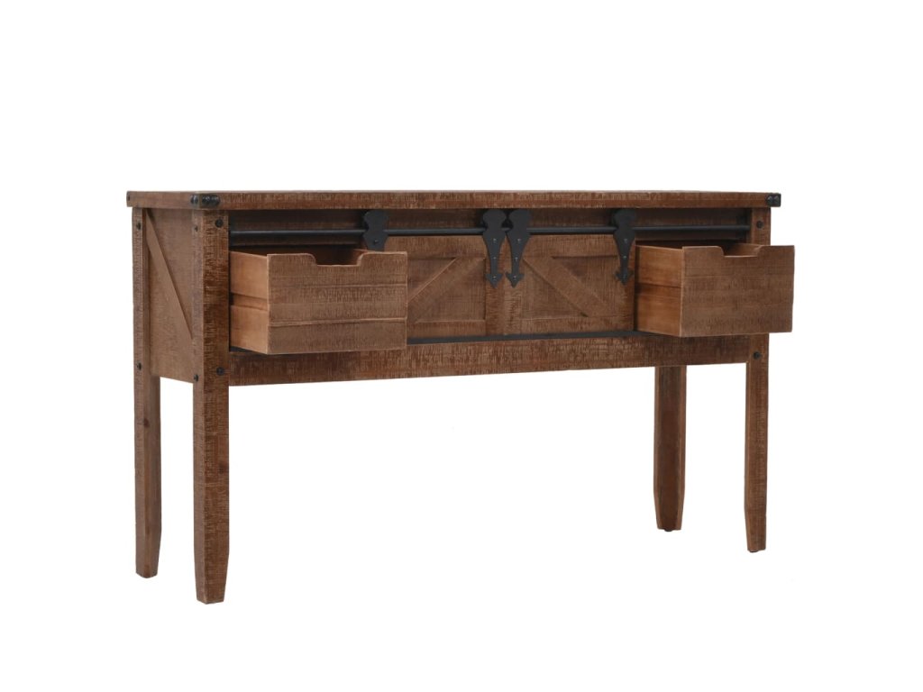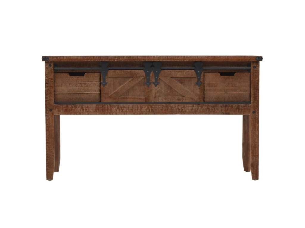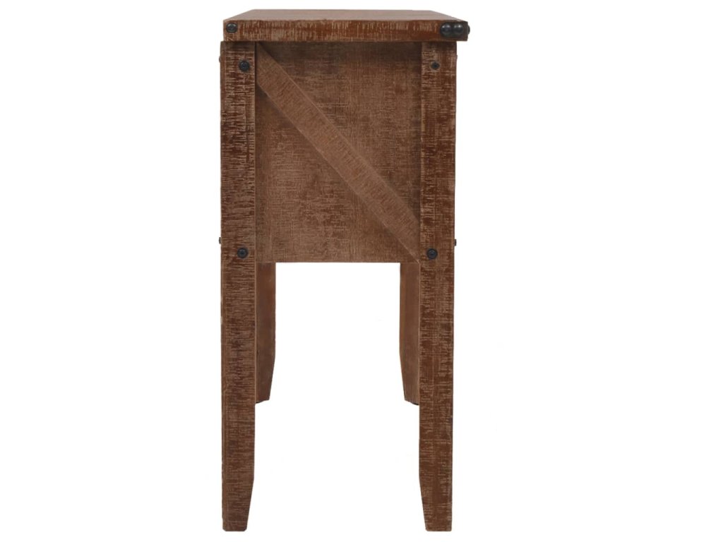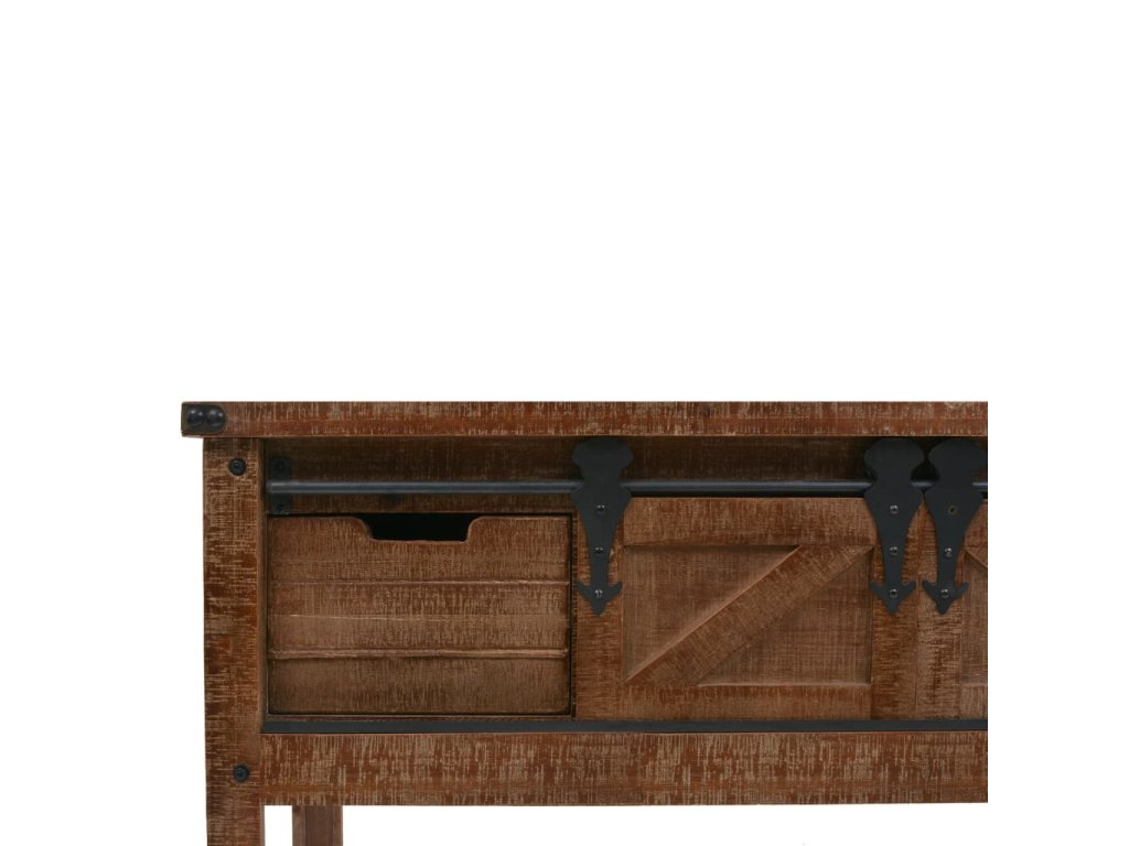Vysoce stabilní a odolný odkládací stolek je vyrobený z masivního jedlového dřeva, jež vyzařuje půvabné vintage kouzlo a dodává stolku rustikální rysy. Pevná horní deska je ideální pro vystavování dekorativních předmětů jako jsou vázy, fotoalba nebo květináče, nebo k odkládání občerstvení a nápojů. Konzolový stolek vám poskytne spoustu místa pro přehledné uspořádání vašich nejrůznějších potřeb. Jedinečný posuvný design umožňuje snadné otevírání a zavírání dvířek a zároveň podtrhuje industriální vintage styl nábytku.