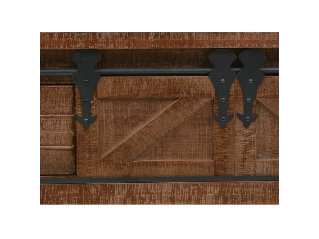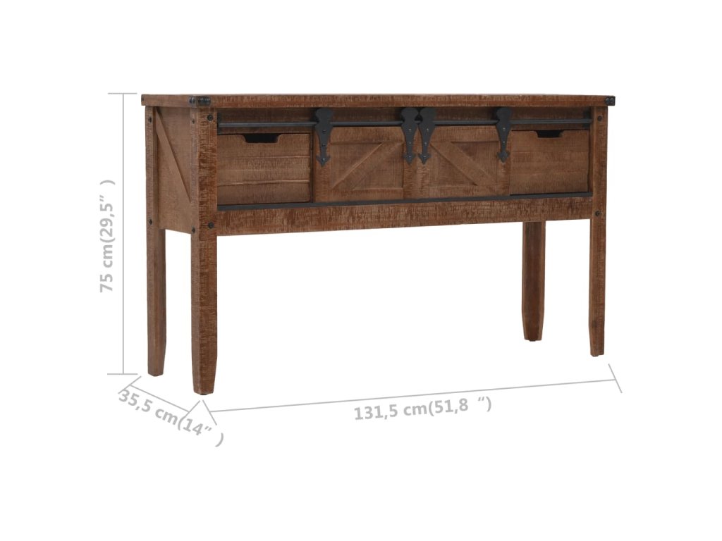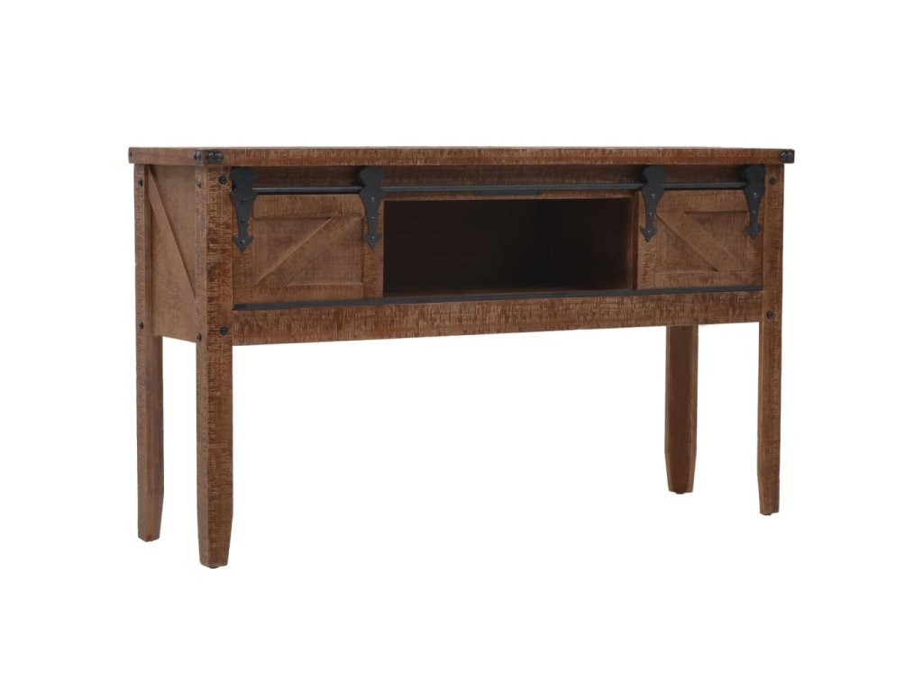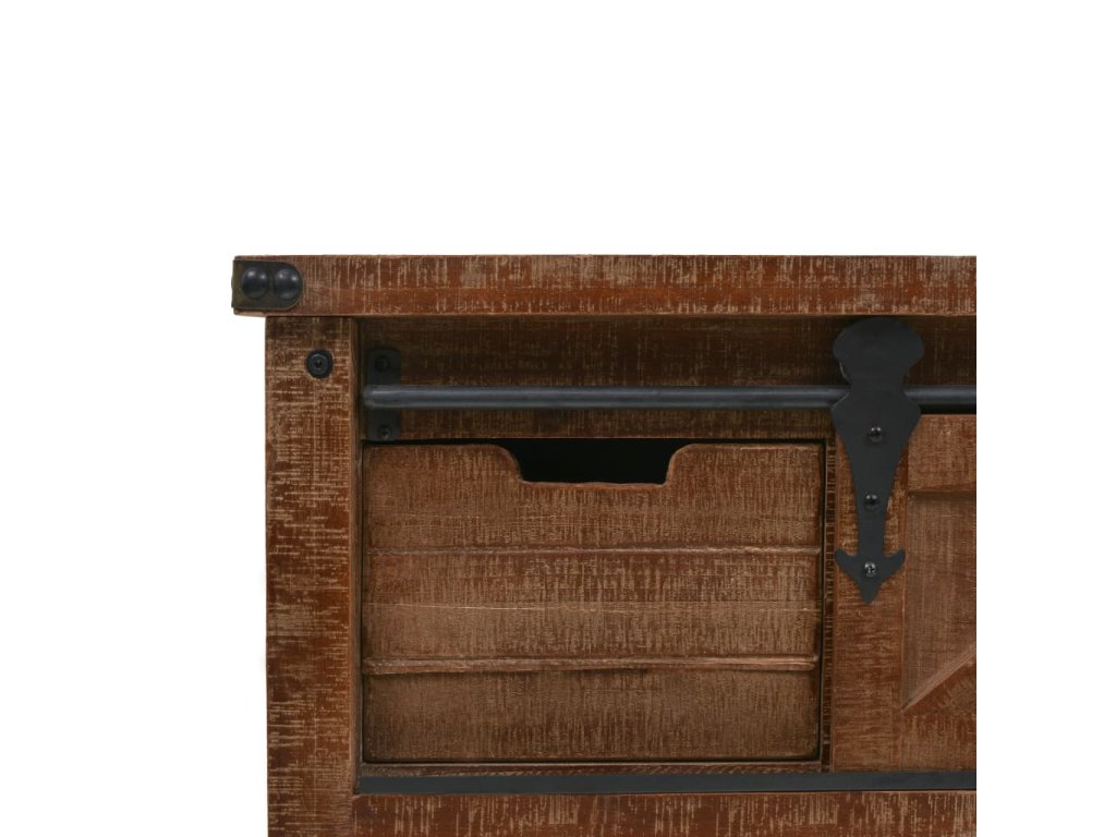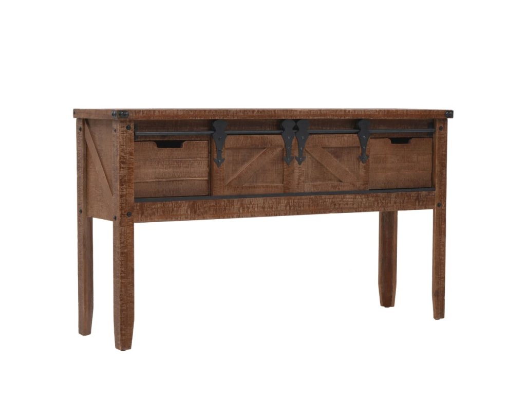 Vysoce stabilní a odolný odkládací stolek je vyrobený z masivního jedlového dřeva, jež vyzařuje půvabné vintage kouzlo a dodává stolku rustikální rysy. Pevná horní deska je ideální pro vystavování dekorativních předmětů jako jsou vázy, fotoalba nebo květináče, nebo k odkládání občerstvení a nápojů. Konzolový stolek vám poskytne spoustu místa pro přehledné uspořádání vašich nejrůznějších potřeb. Jedinečný posuvný design umožňuje snadné otevírání a zavírání dvířek a zároveň podtrhuje industriální vintage styl nábytku.