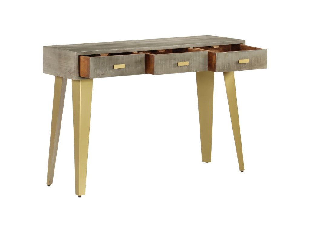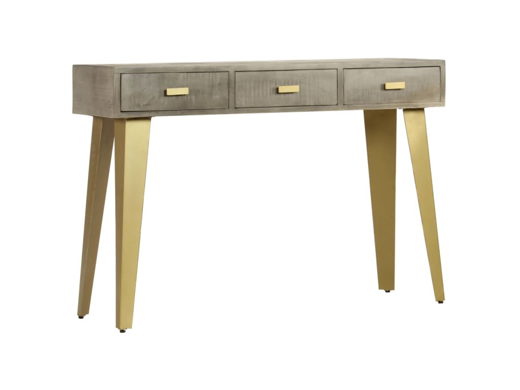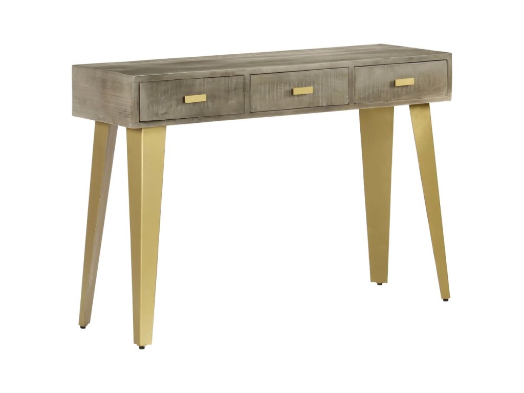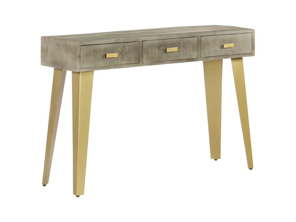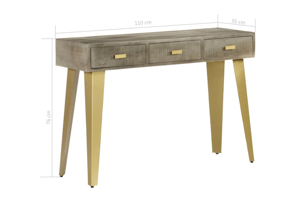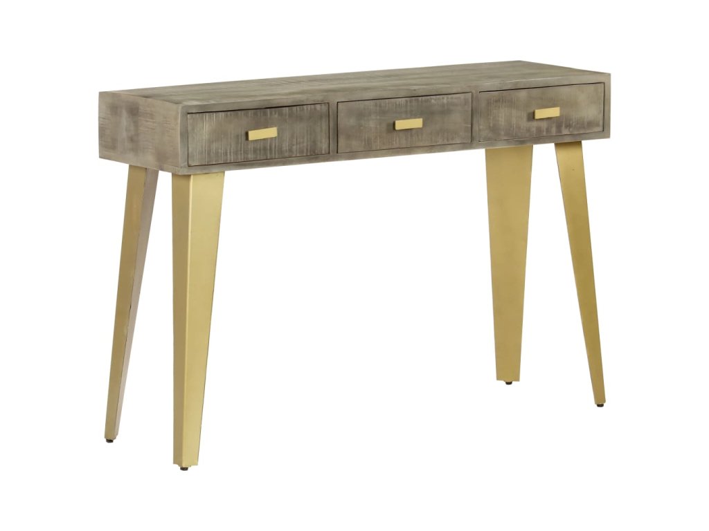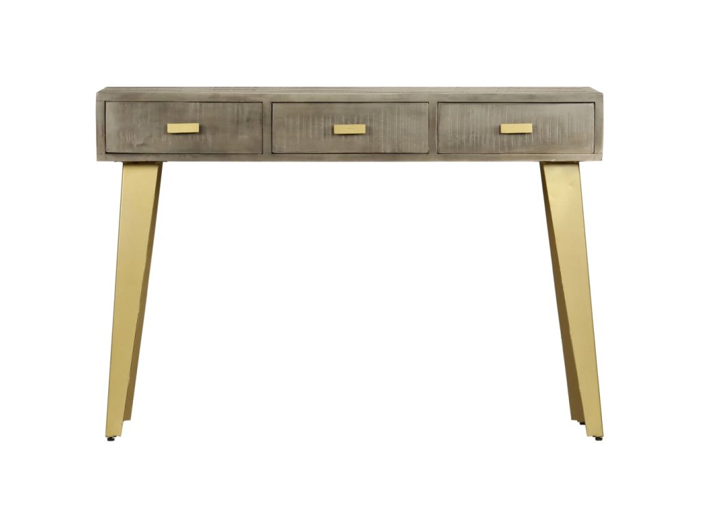 Konzolový stolek masivní mangovník šedý s mosazí 110x35x76 cm 246682