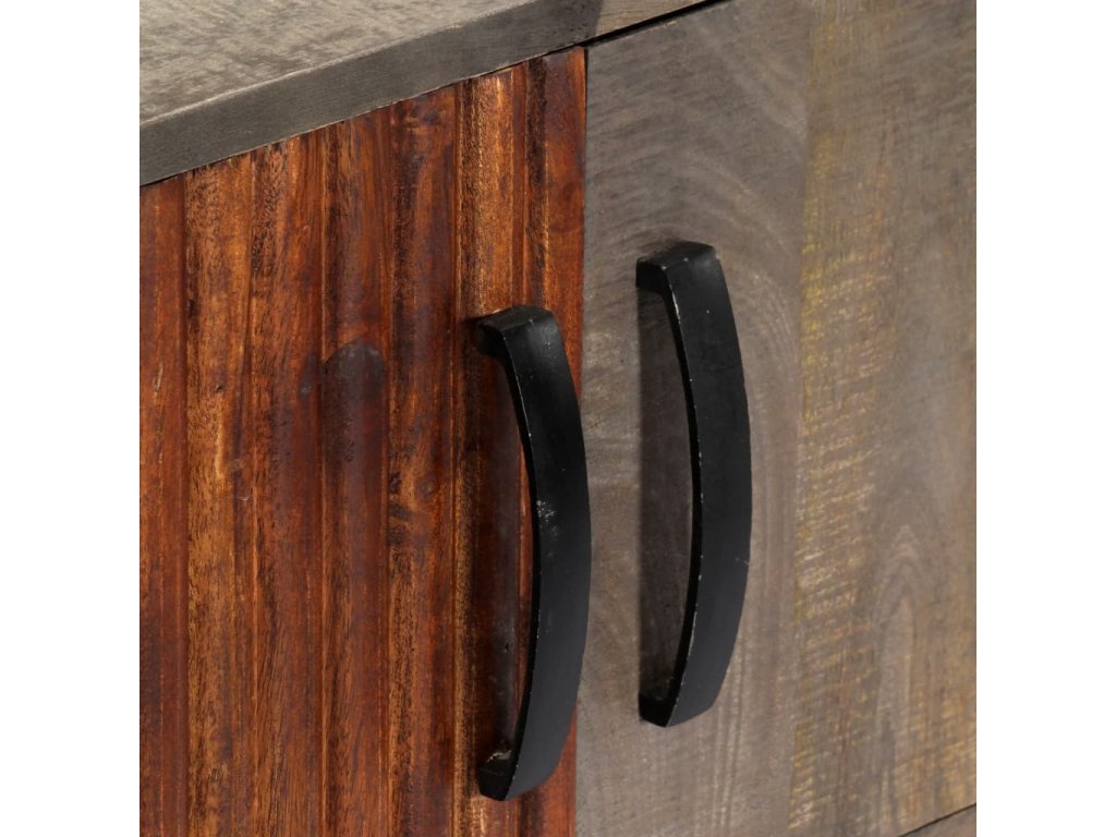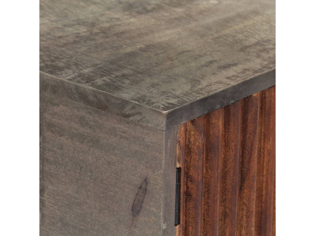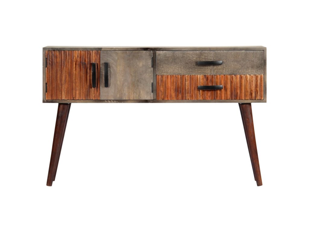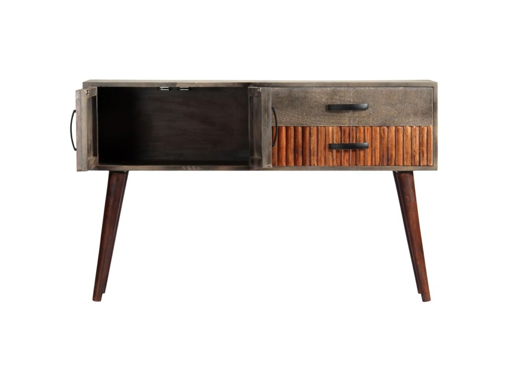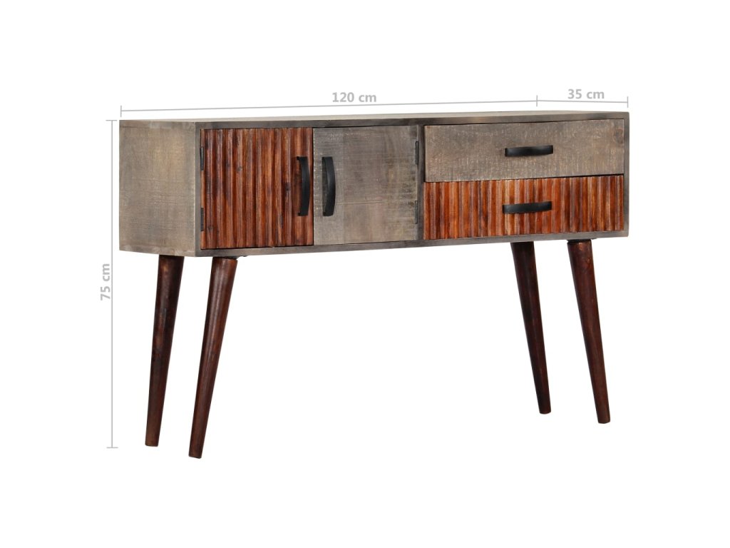 Stolek je zhotoven z masivního hrubého mangovníkového dřeva a má pevnou desku, na kterou si můžete vystavit dekorativní předměty, jako jsou mísy s ovocem či vázy. Pevné nohy zaručují jeho stabilitu a odolnost, takže vám vydrží sloužit po dlouhá léta. Mangovník má husté a robustní tvrdé dřevo s překrásnými hnědými či zlatými pruhy a liniemi na povrchu. Každá fáze výrobního procesu se provádí s mimořádnou péčí, ať už se jedná o leštění, natírání anebo lakování. Za 2 dvířky a ve 2 zásuvkách najdete spoustu místa, kde si můžete přehledně uspořádat nejrůznější menší věci tak, abyste je měli vždy po ruce.