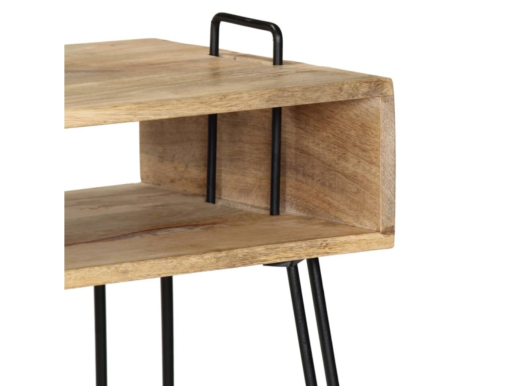 Je vyroben z masivního mangovníku a pevných ocelových rámů, díky čemuž je stolek vysoce stabilní a odolný. Deska je ideální k umístění různých dekorativních předmětů, jako jsou vázy a květináče. Poličky poskytují dodatečný úložný prostor pro přehledné uschování vašich malých předmětů. Ocelové rámy dodávají stolku pevnost, stejně tak i vzhled v industriálním stylu. Každý krok výrobního procesu je prováděn s největší péčí, ať už je to leštění a lakování. Montáž je snadná.