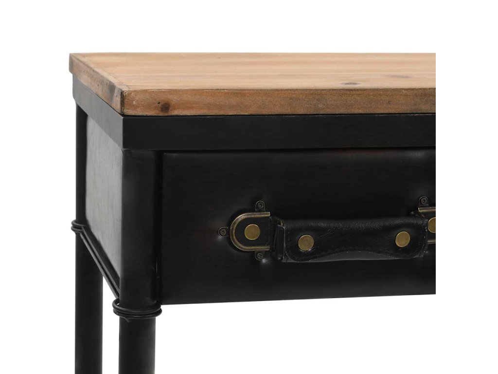 Odkládací stolek je vyroben z masivního jedlového dřeva a MDF a disponuje robustním ocelovým rámem. Stolní desku lze využít k vystavení dekorativních předmětů, zarámovaných fotografií či květináčů. Stolek je vybaven 2 vkusnými zásuvkami potaženými umělou kůží, kde můžete uchovávat menší věci, jako jsou klíče, zápisníčky, psací potřeby nebo jiné drobnosti, které chcete mít přehledně uspořádané a po ruce. Odkládací stolek má 4 všestranná kolečka, takže jej můžete snadno přesouvat po celém domě.