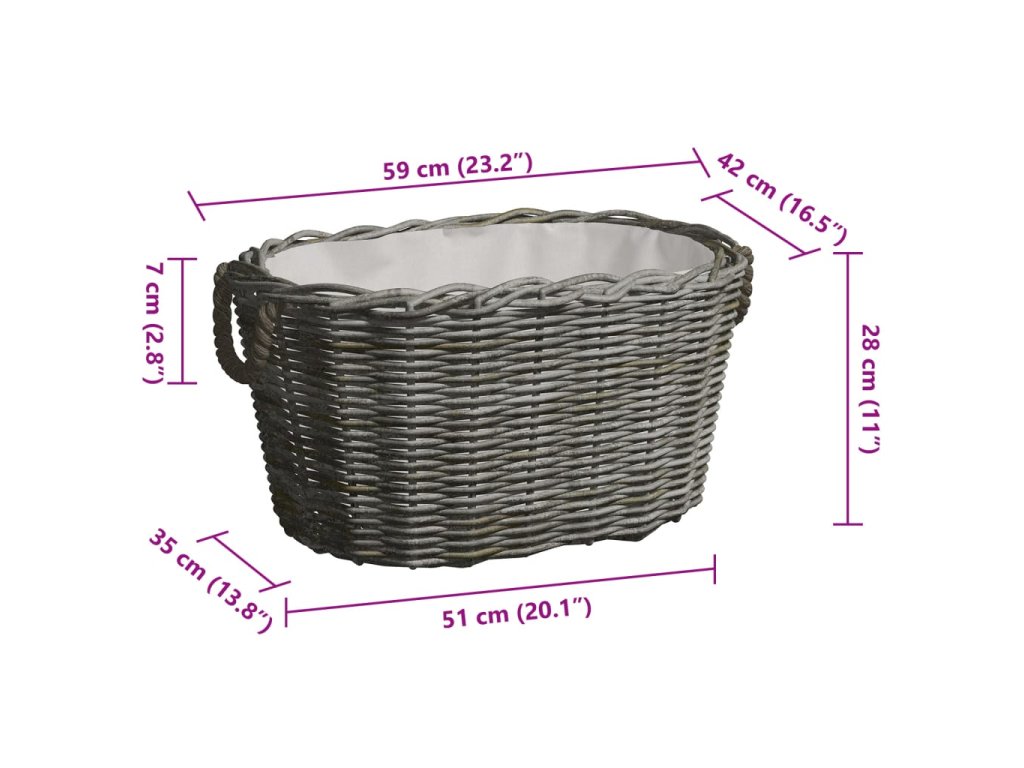 Koš na dřevo s držadly 59 x 42 x 28 cm šedá vrba 286985