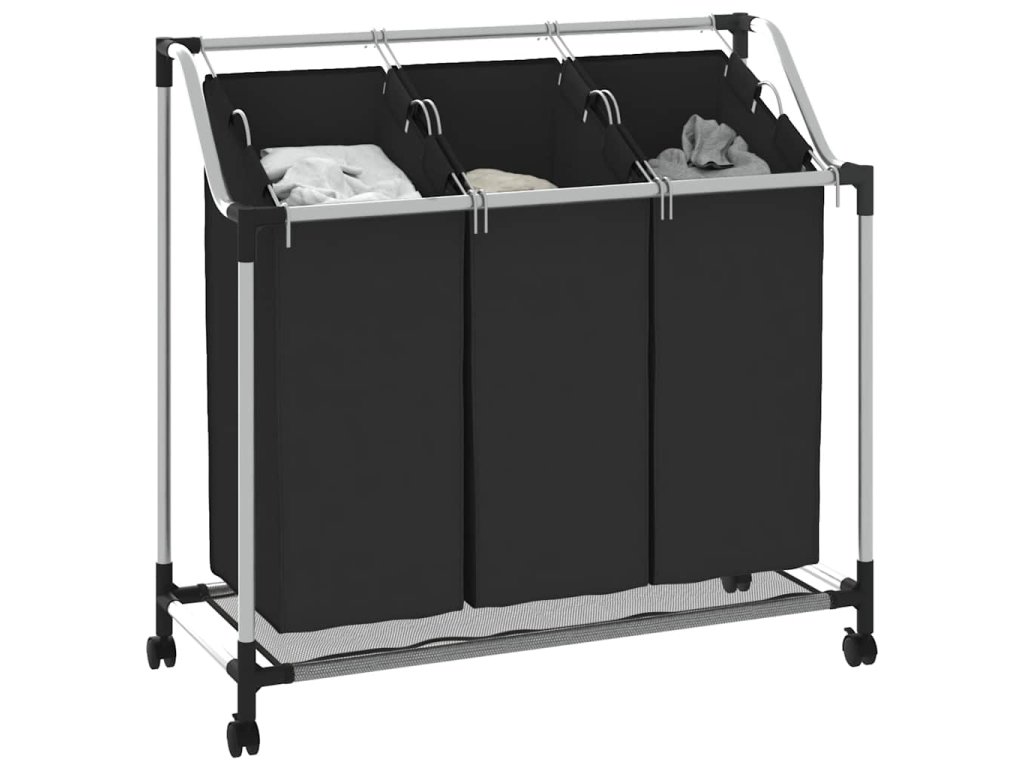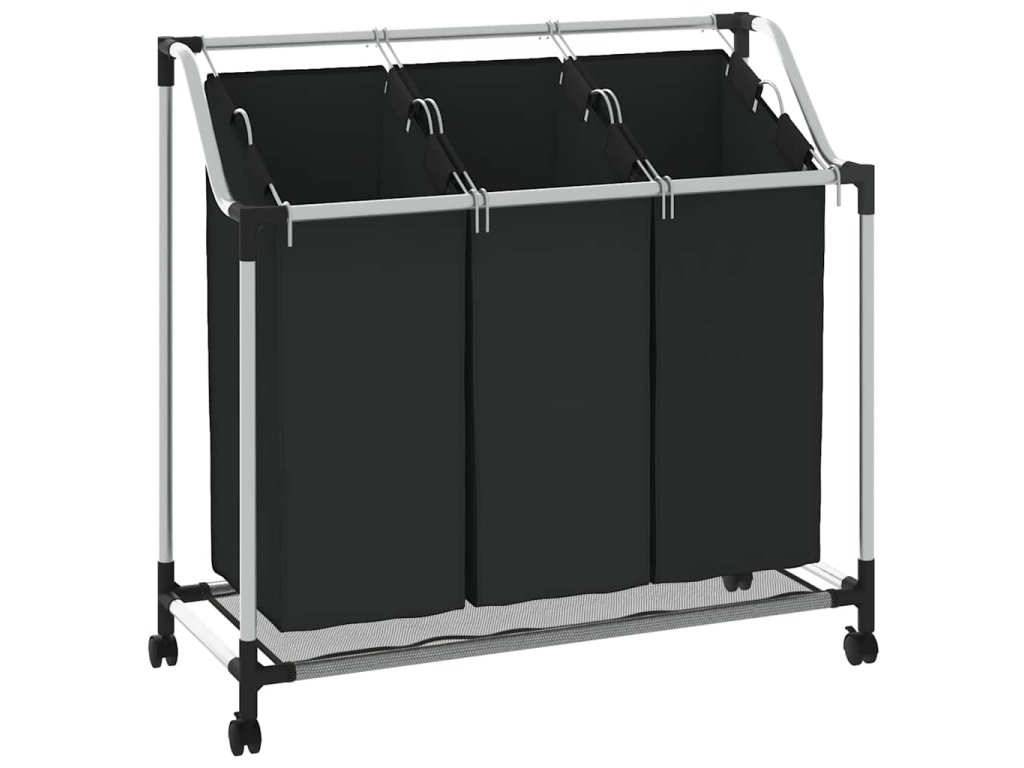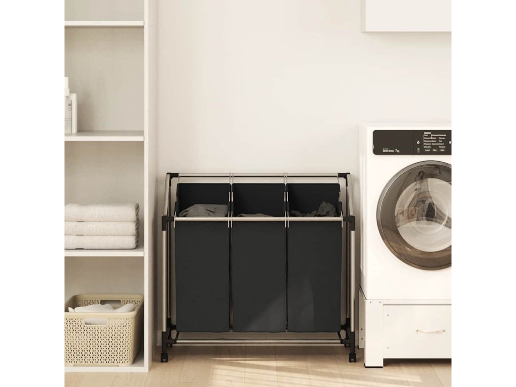 Koš na třídění prádla se 3 vaky černý ocel 282426