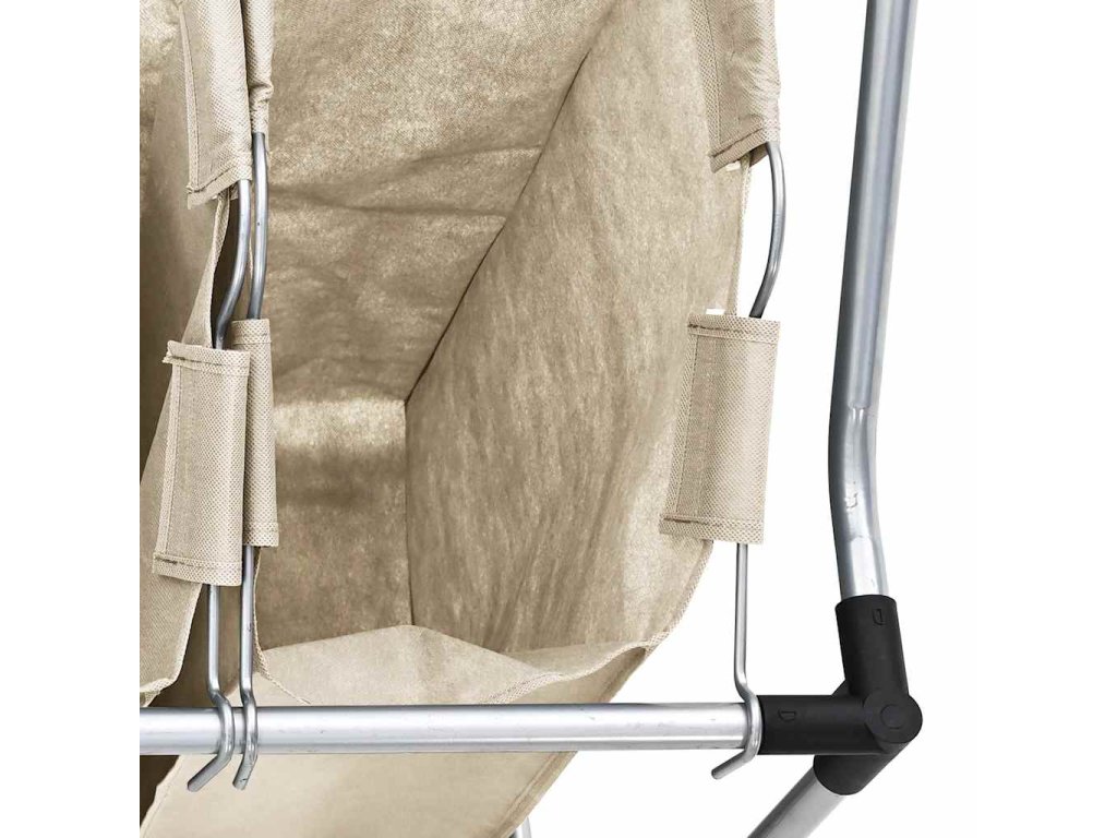 Převážení koše je také snadné, jelikož je vybavený kolečky a rukojeťmi na obou koncích vozíku. Odolný ocelový rám unese velké množství prádla až do hmotnosti 20 kg. Montáž a údržba koše na prádlo je snadná.