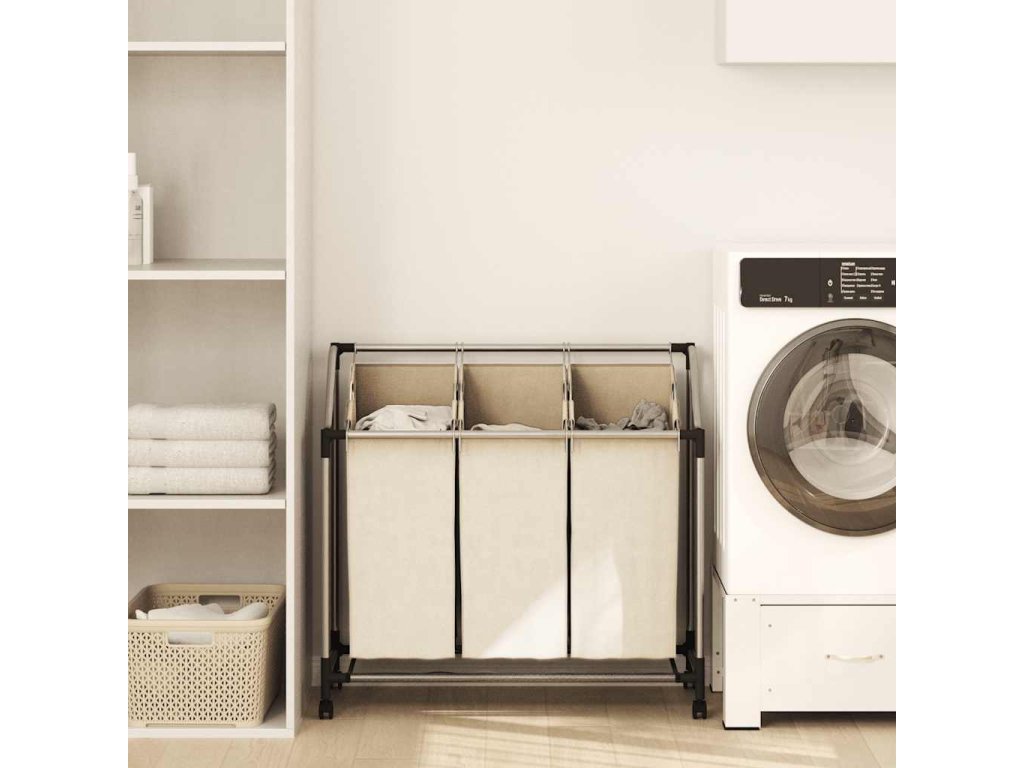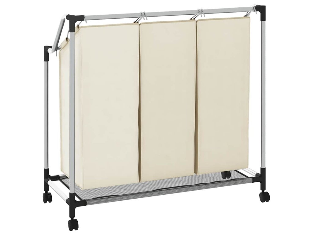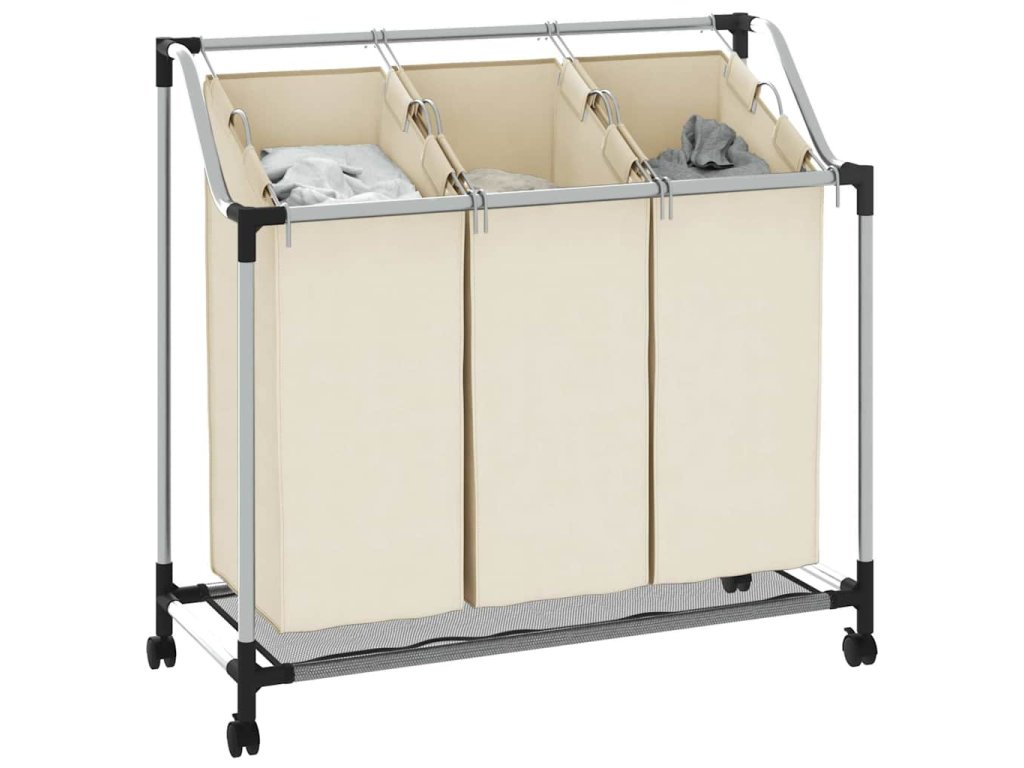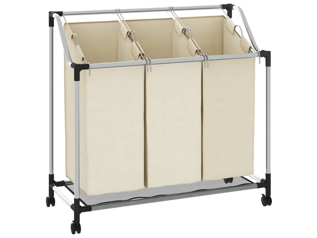 Koš na třídění prádla se 3 vaky krémový ocel 282427