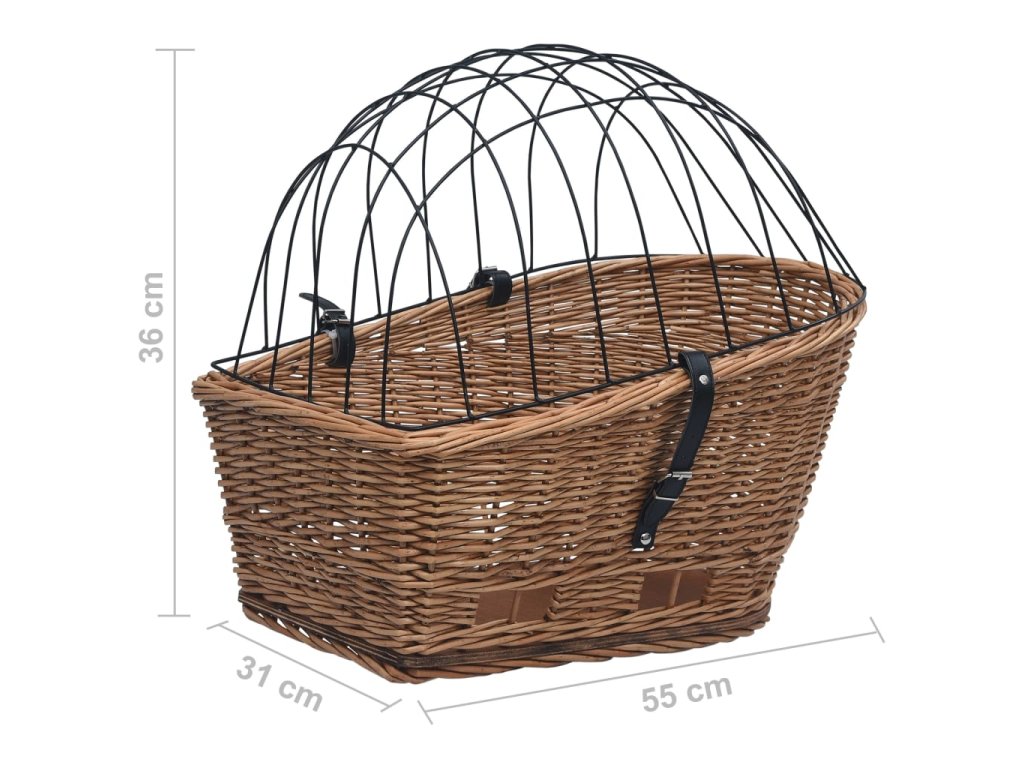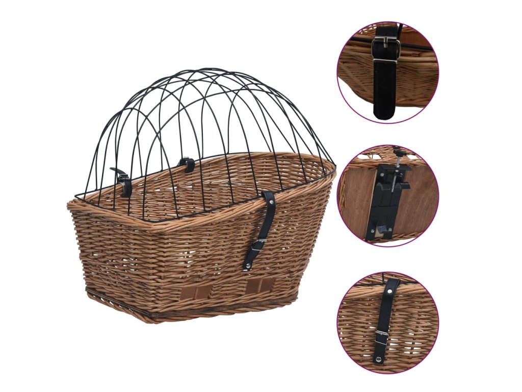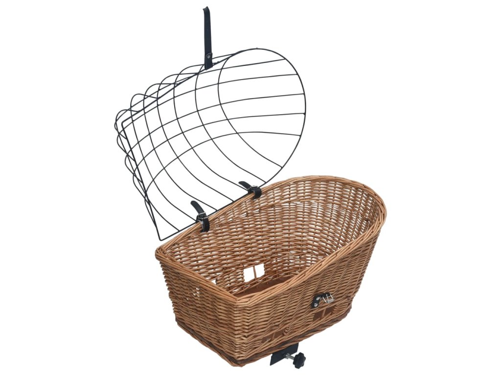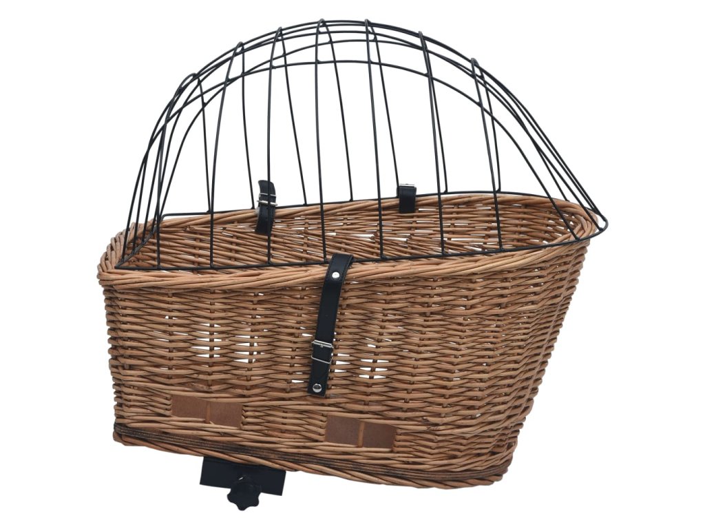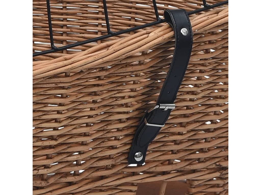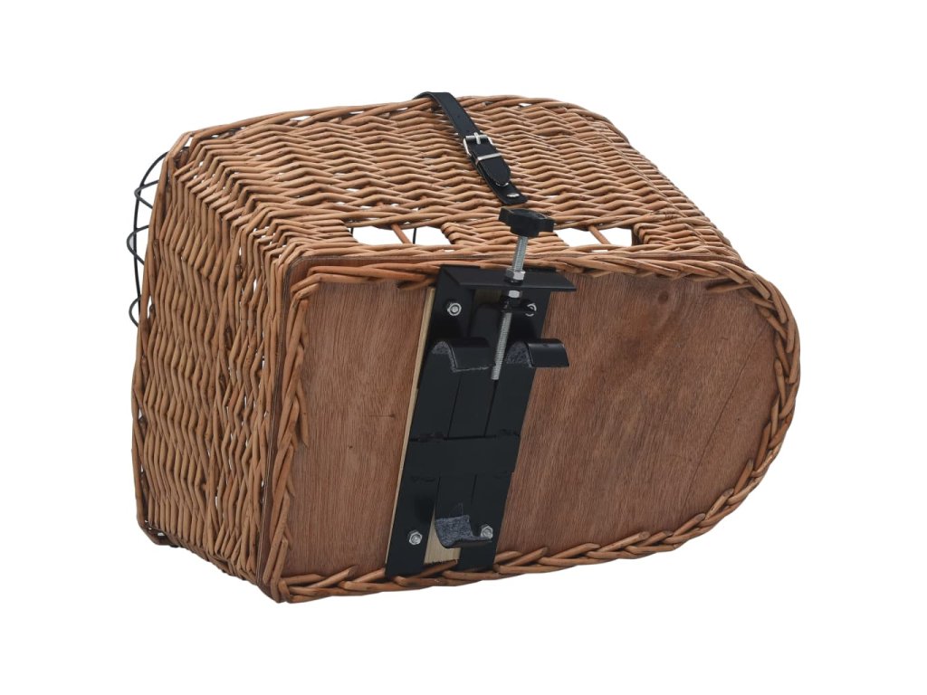 Koš je vyrobený z přírodního vrbového proutí, je tedy odolný proti roztržení a zaručuje dlouhodobé používání, ať už si ho vaši chlupatí kamarádi škrábají, jak se jim zlíbí. Přírodní dřevěný materiál neobsahuje chemikálie. Robustní uzamykací mechanismus a kryt z masivního železa udrží potraviny nebo domácí mazlíčky během vašich výletů na svém místě. Košík na zadní kolo má na dně háčky, které zaručují snadné upevnění a odstranění.