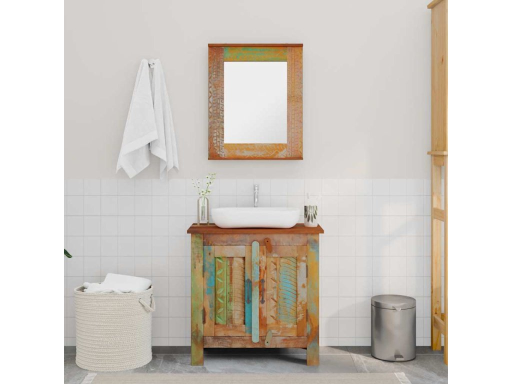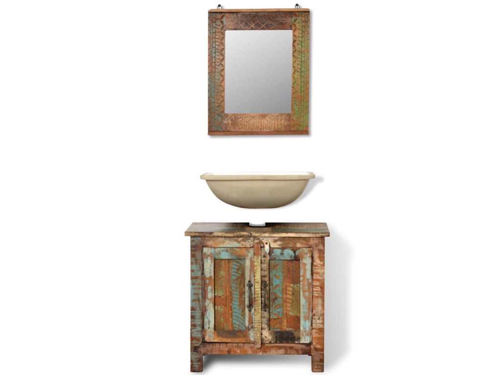 Koupelnová sada z recyklovaného masivního dřeva se zrcadlem 241134