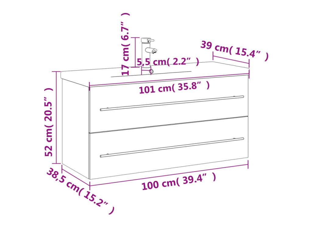 - Rozměry umyvadla: 101 x 39 x 18 cm (D x Š x V)