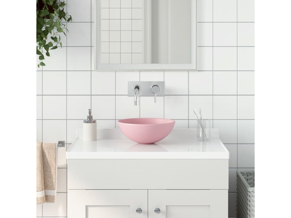 Koupelnové umyvadlo keramické matně růžové kulaté 146977