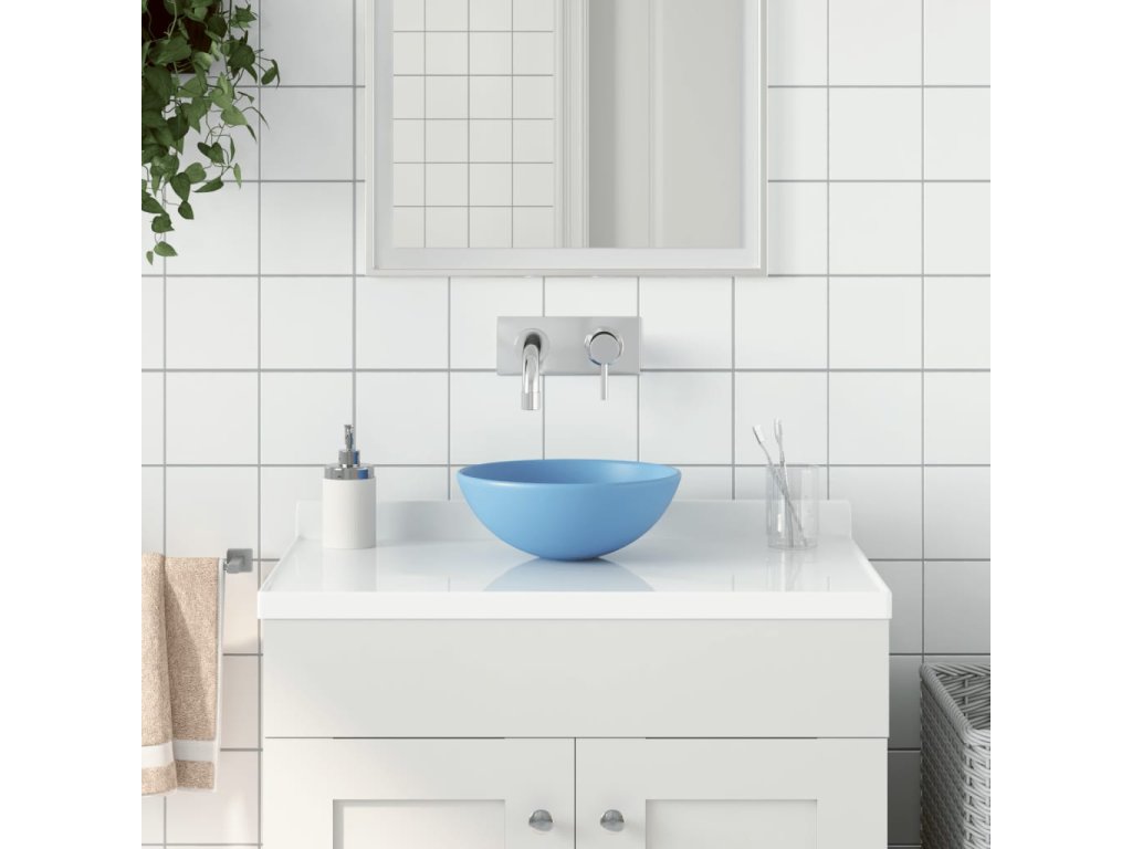 Koupelnové umyvadlo keramické světle modré kulaté 146978