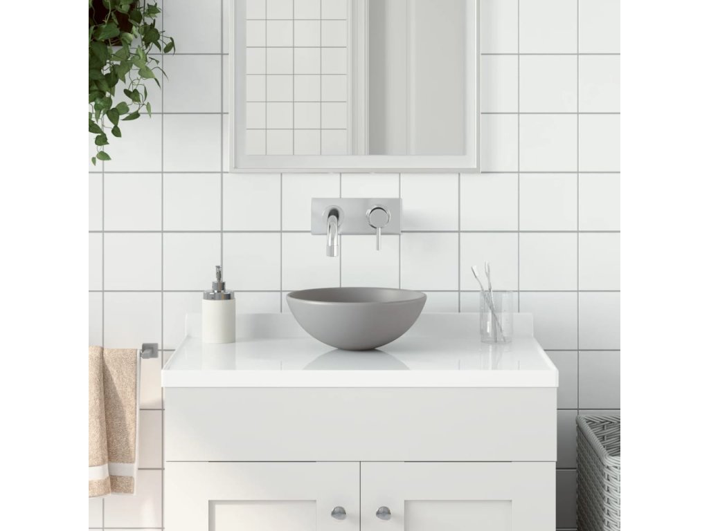 Koupelnové umyvadlo keramické světle šedé kulaté 146982
