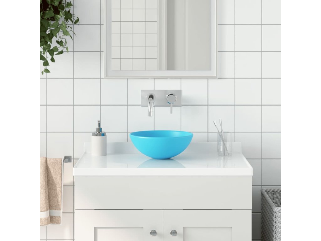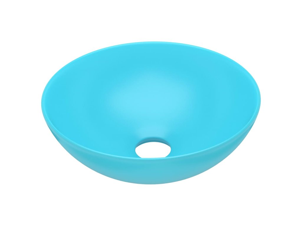 Kvalitní keramika s matným povrchem se snadno čistí. Jelikož umyvadlo nemá přepad a instaluje se na desku, působí velice čistým a elegantním dojmem. Uprostřed se nachází odtokový otvor o průměru 4,5 cm. Upozorňujeme, že kohoutek není součástí balení.