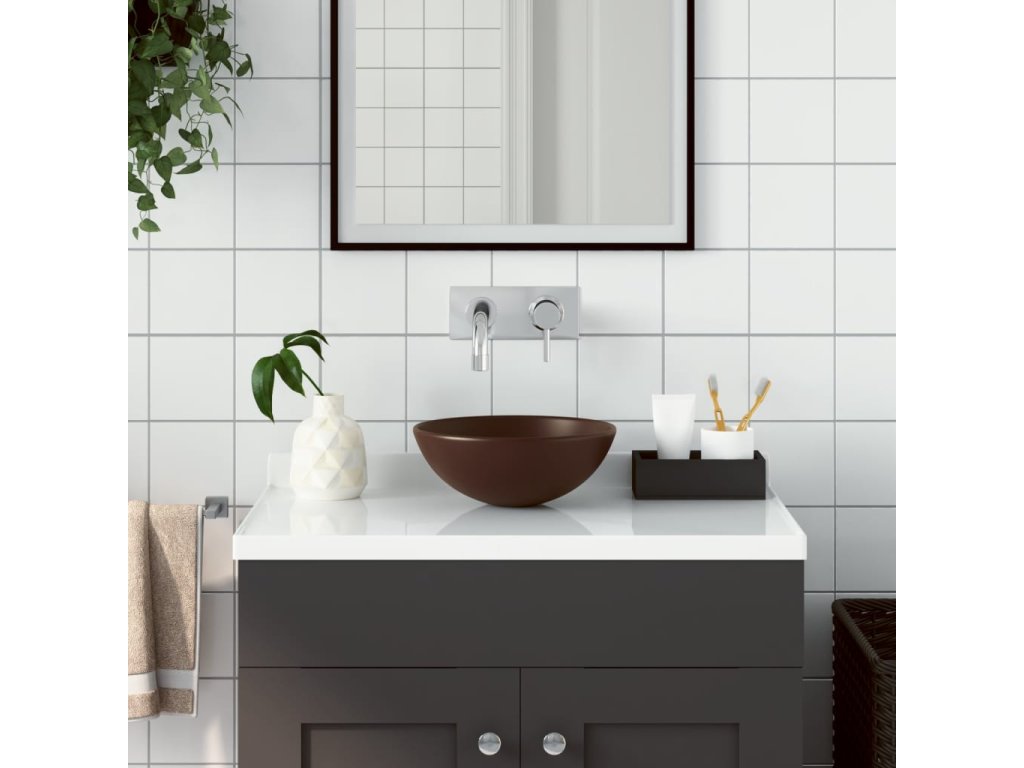 Koupelnové umyvadlo keramické tmavě hnědé kulaté 146984