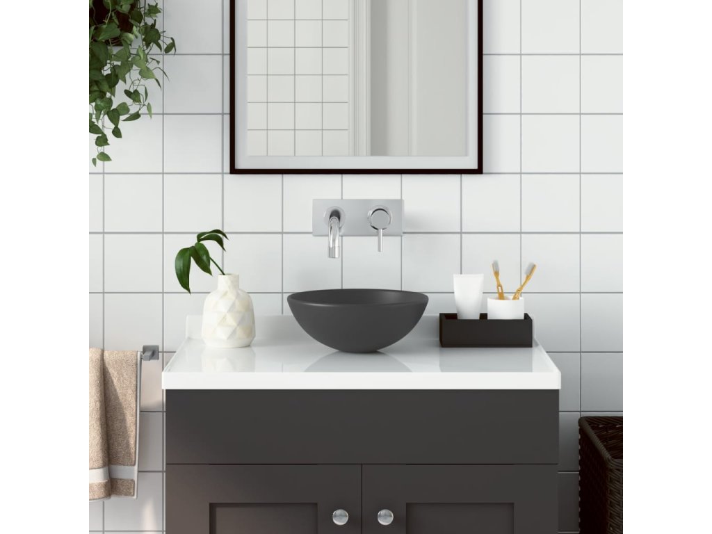 Koupelnové umyvadlo keramické tmavě šedé kulaté 146983
