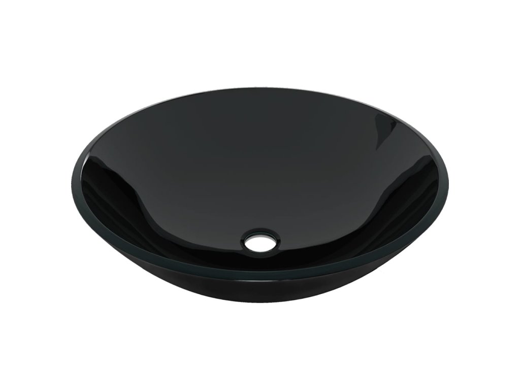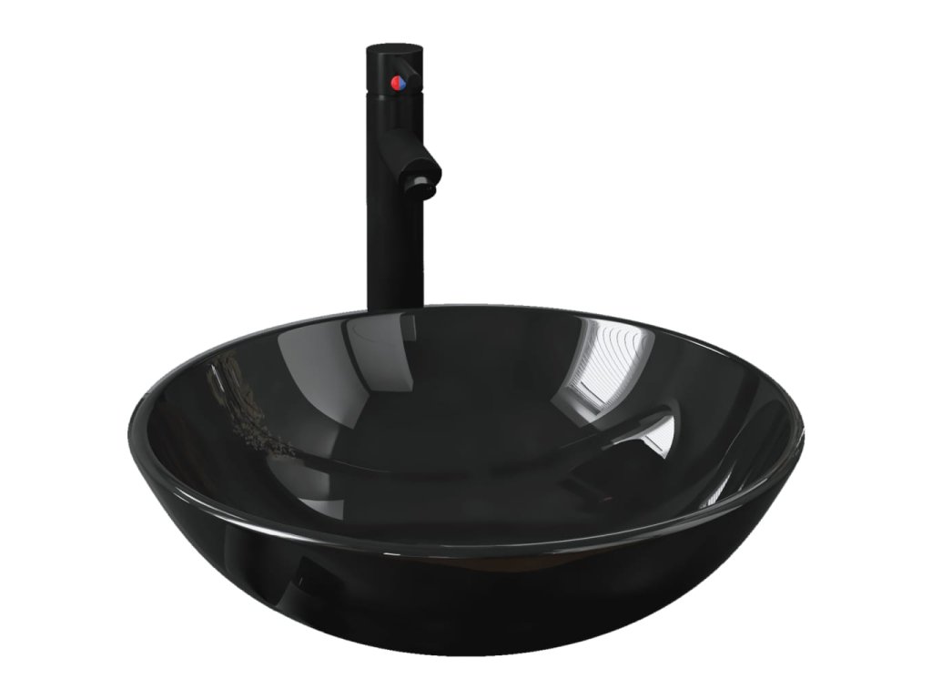 Koupelnové umyvadlo s baterií a výpustí černé tvrzené sklo 3098450