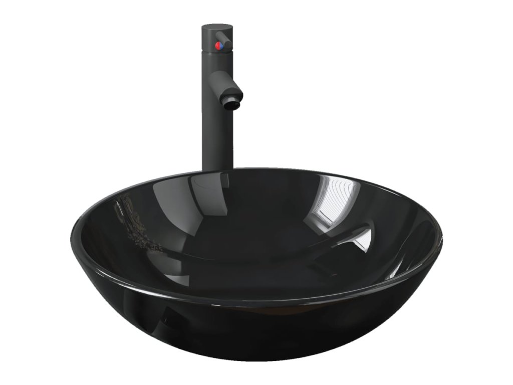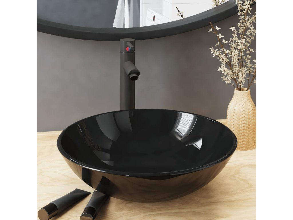 Koupelnové umyvadlo s baterií a výpustí černé tvrzené sklo 3098452