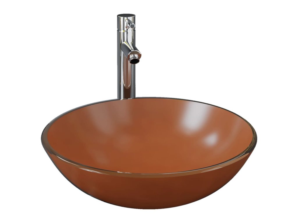 Koupelnové umyvadlo s baterií a výpustí hnědé tvrzené sklo 3098454