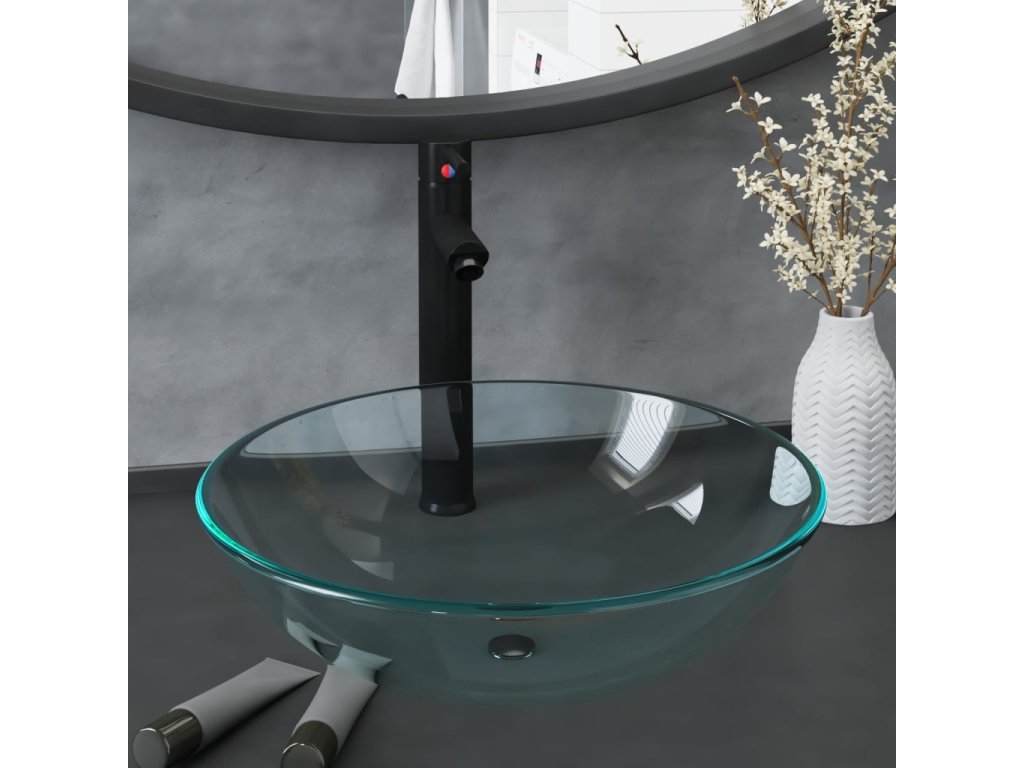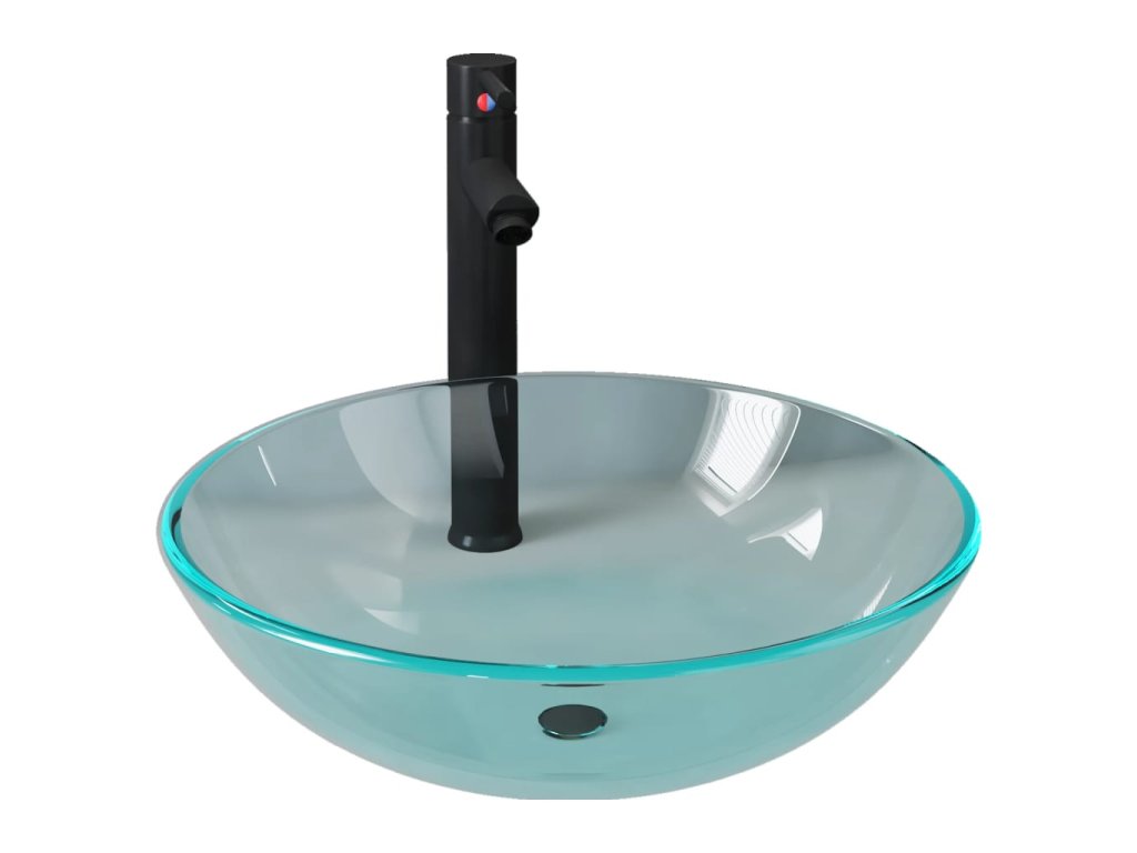 Koupelnové umyvadlo s baterií a výpustí průhledné tvrzené sklo 3098440