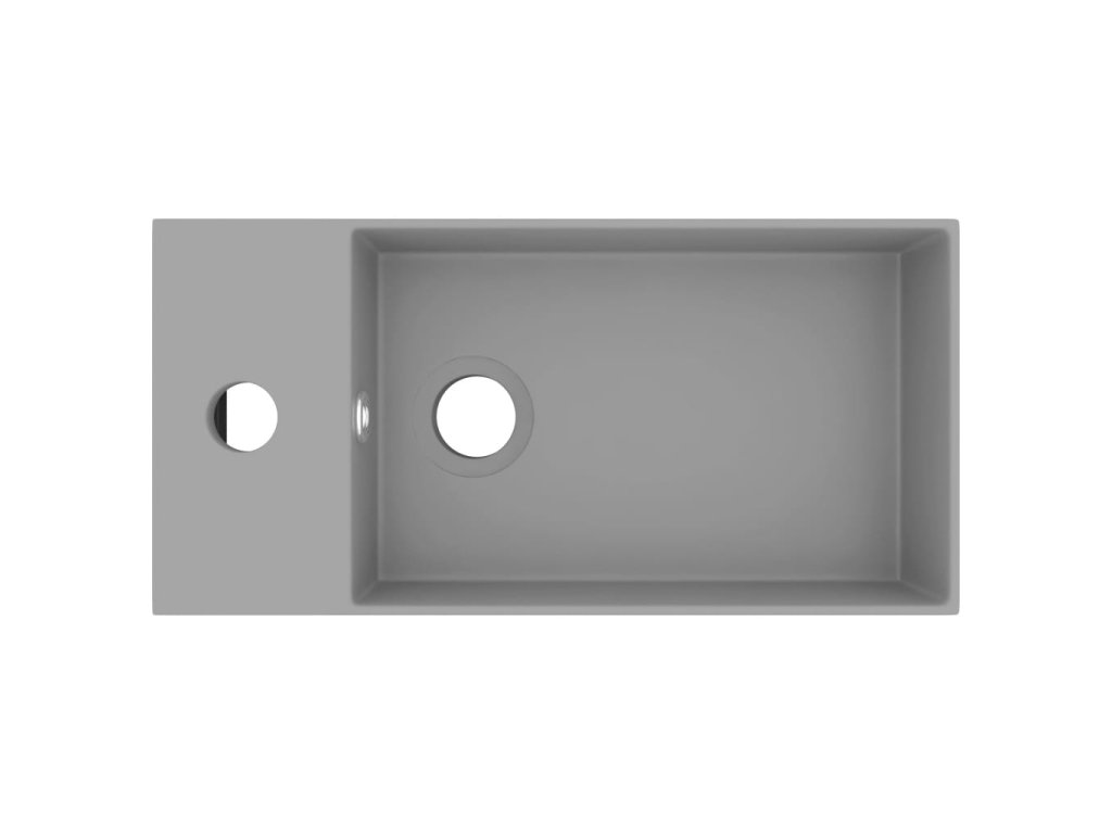 Kvalitní keramika s matným povrchem se snadno čistí. Přepadový otvor zajistí odtok vody, když je umyvadlo zaplněné. V umyvadle je též otvor pro instalaci vodovodní baterie. Odtokový otvor má průměr 4,5 cm. Je vhodný k instalaci na desku. Poznámka: Vodovodní baterie není součástí balení.