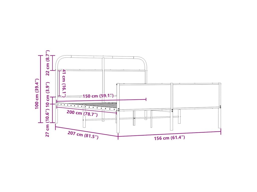 Kovový rám postele bez matrace dub sonoma 150 x 200 cm 3318693