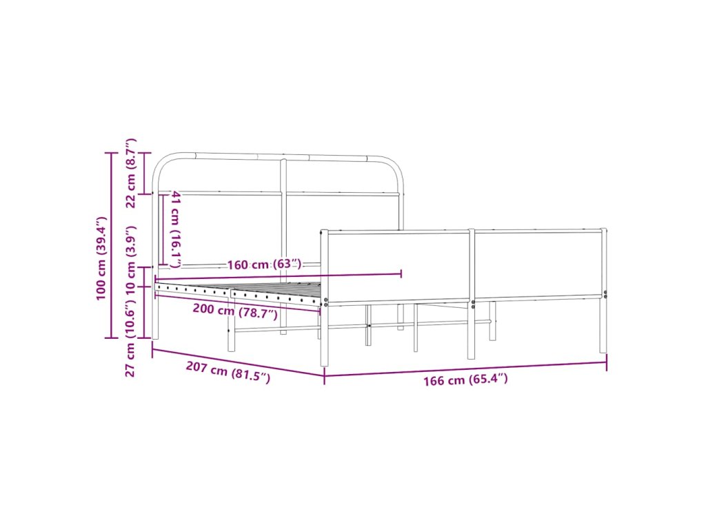 Kovový rám postele bez matrace dub sonoma 160 x 200 cm 3318694