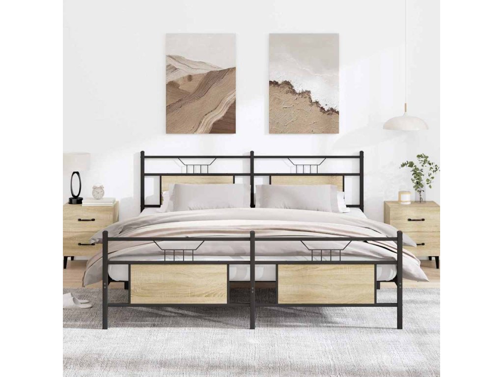 Kovový rám postele bez matrace dub sonoma 180 x 200 cm 3325098