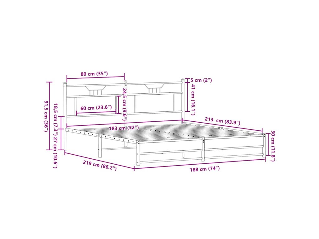 Kovový rám postele bez matrace dub sonoma 183 x 213 cm 3325121