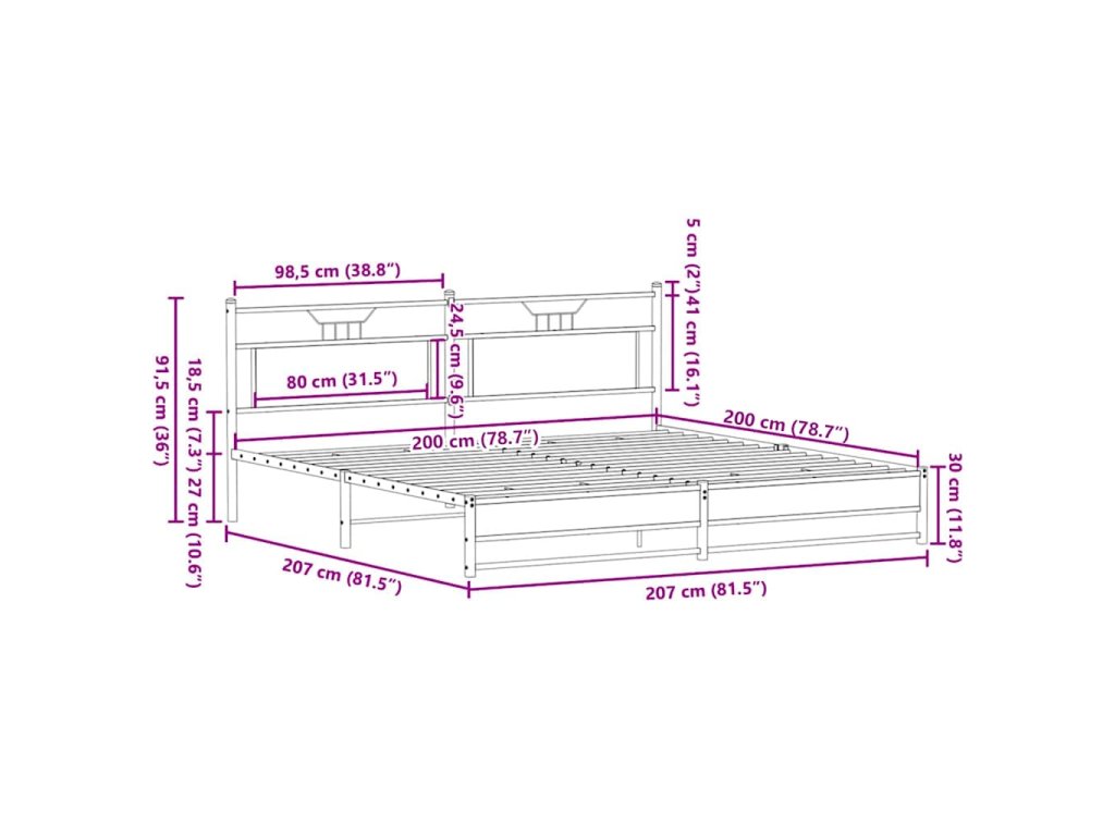 Kovový rám postele bez matrace dub sonoma 200 x 200 cm 3325123