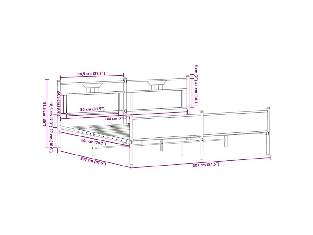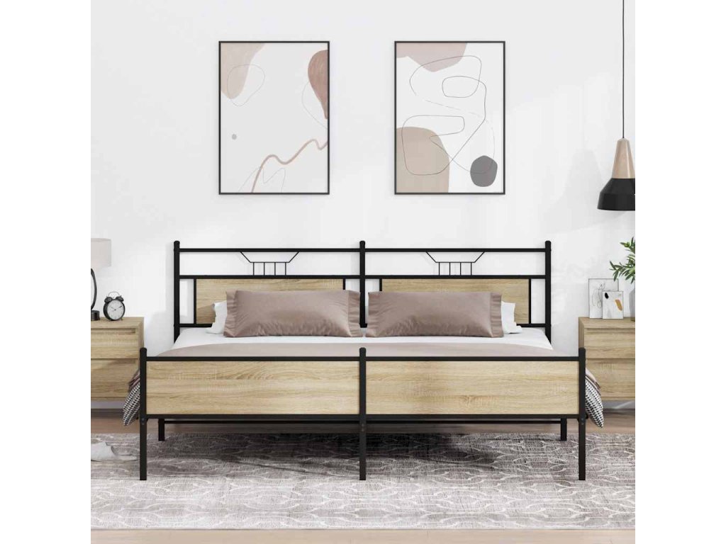 Kovový rám postele bez matrace dub sonoma 200 x 200 cm 3325128