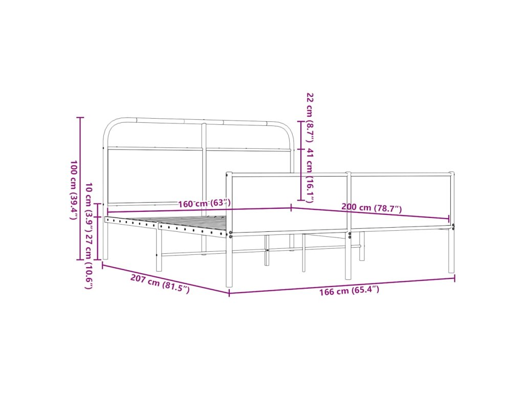 Kovový rám postele bez matrace hnědý dub 160 x 200 cm 3318709