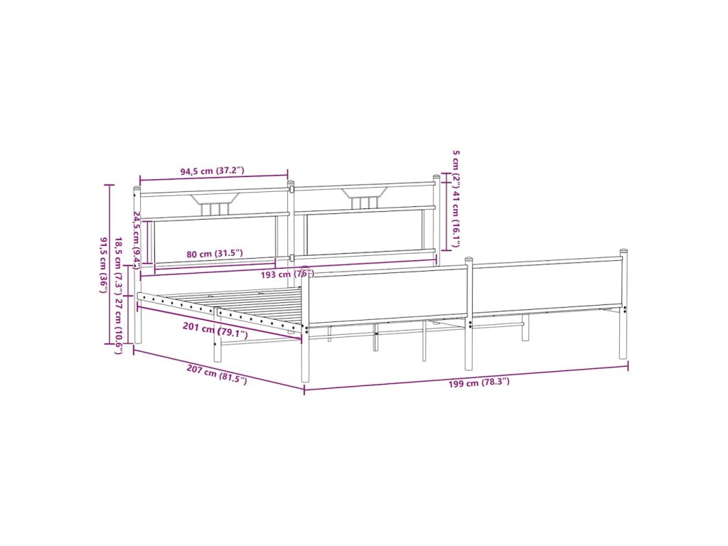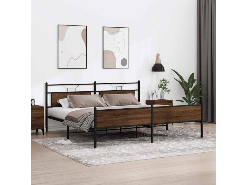 Kovový rám postele bez matrace hnědý dub 193 x 201 cm 3325138