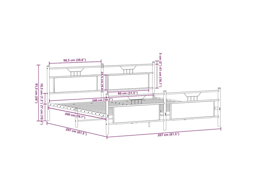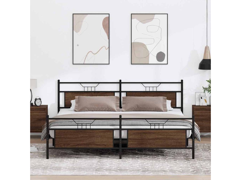 Kovový rám postele bez matrace hnědý dub 200 x 200 cm 3325106