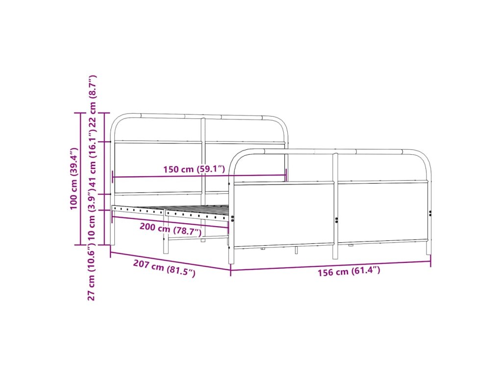 Kovový rám postele bez matrace kouřový dub 150 x 200 cm 3318637
