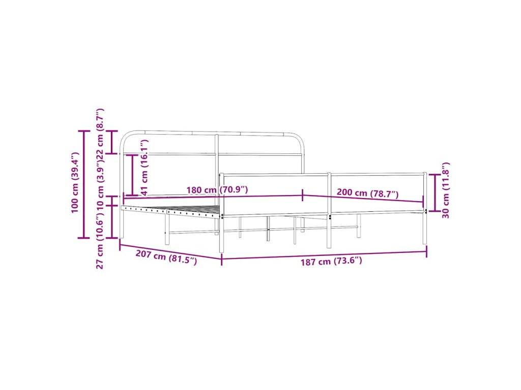 Kovový rám postele bez matrace kouřový dub 180 x 200 cm 3318680