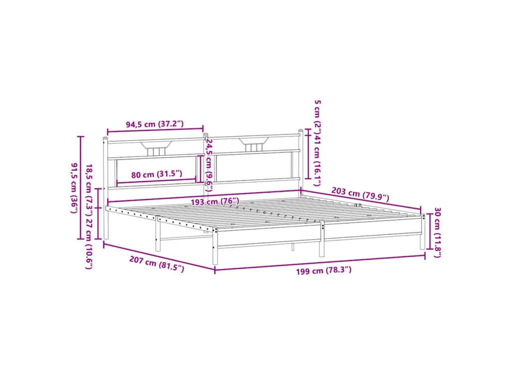 Kovový rám postele bez matrace kouřový dub 193 x 203 cm 3325107