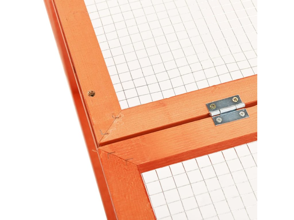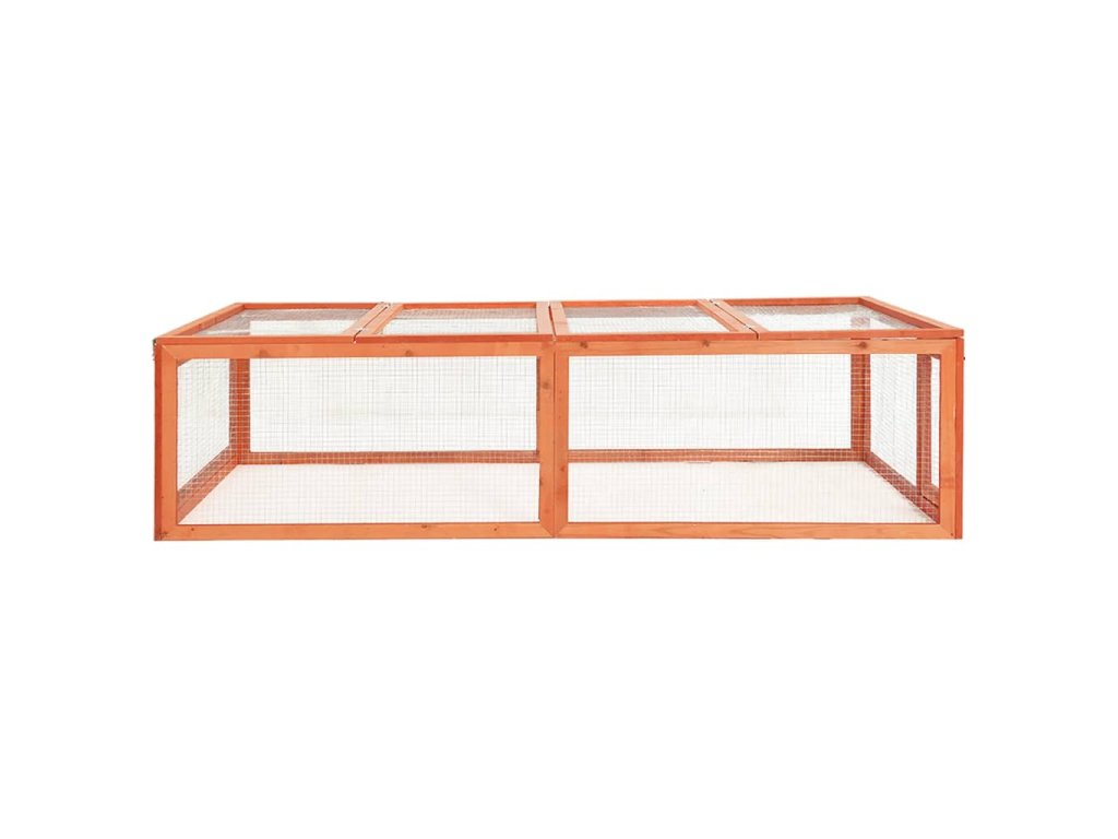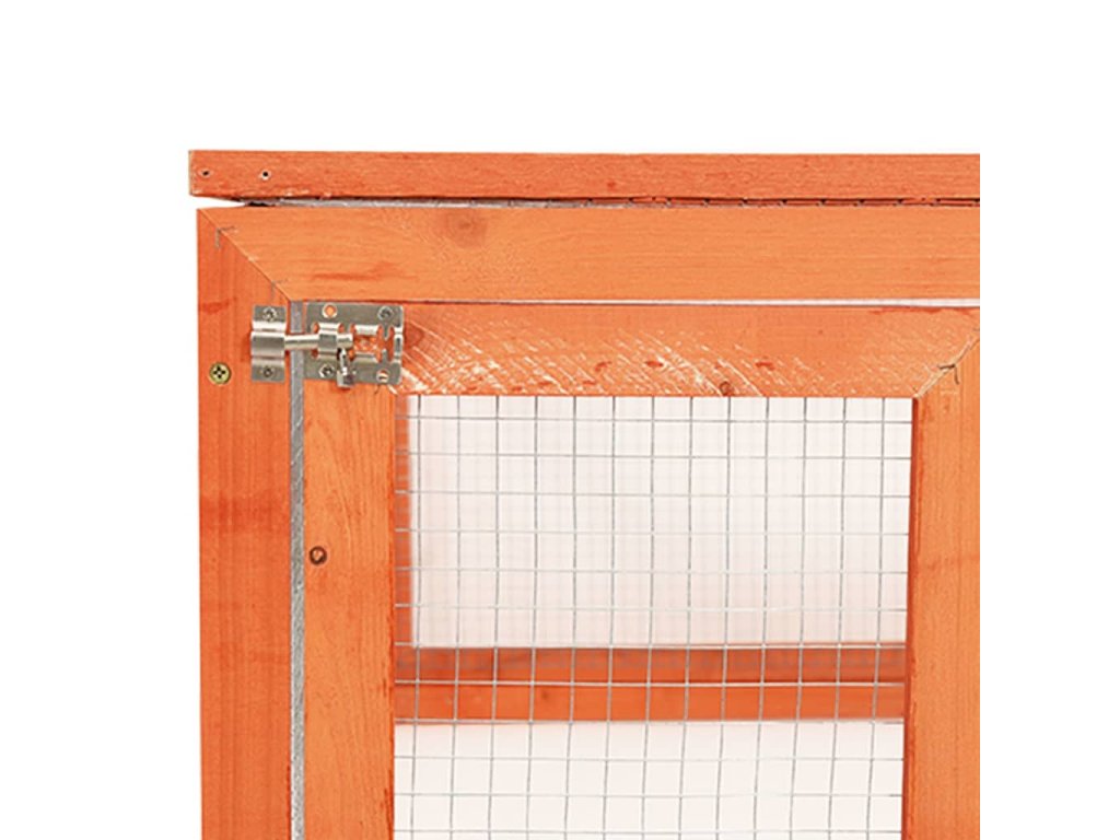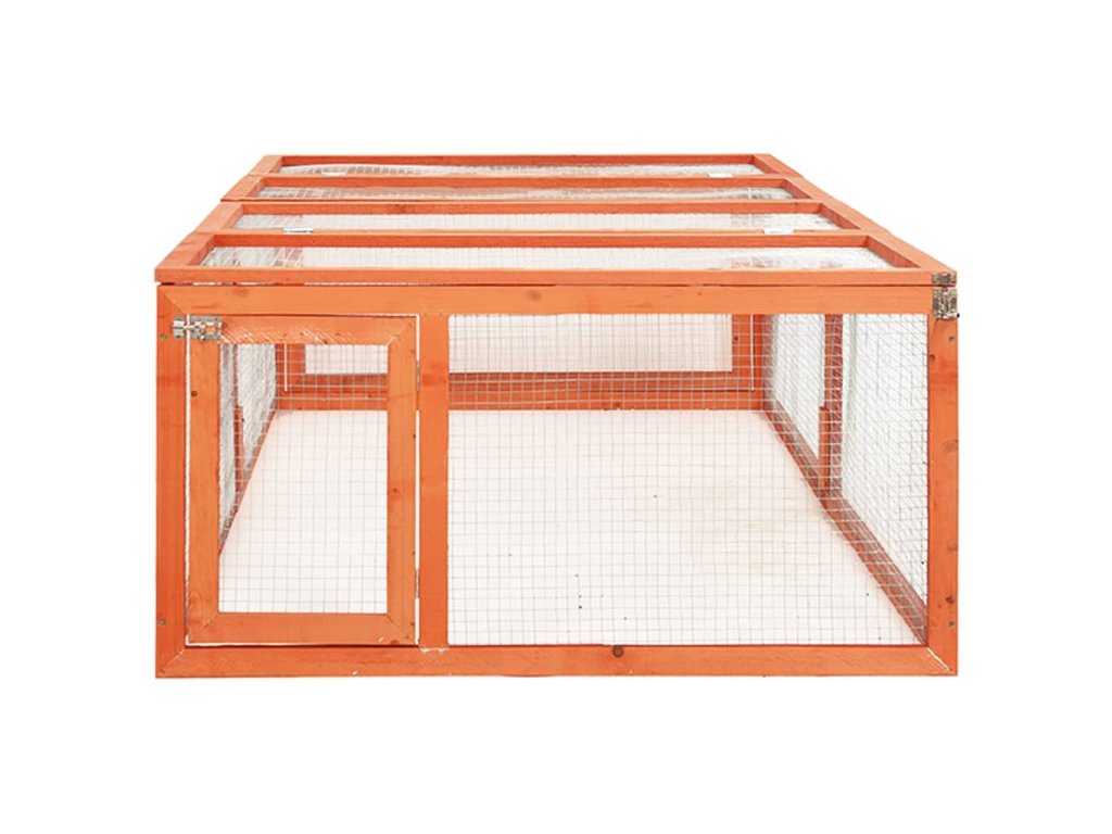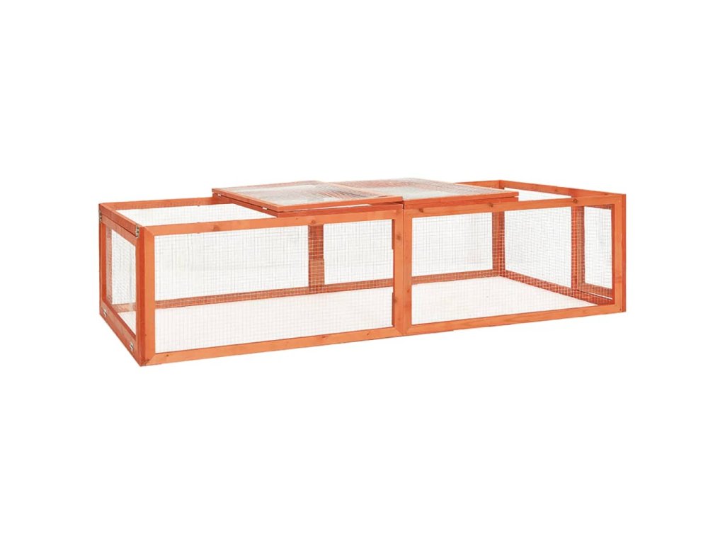 Venkovní výběh pro králíky je zhotoven z masivního rámu z jedlového dřeva a ocelové drátěné konstrukce, kterou je možné snadno a rychle sestavit kdekoli na zahradě. Nabízí dostatek čerstvého vzduchu a slunečního světla, a tím poskytne králíkovi téměř přirozený způsob života. Kryt výběhu se skládá ze čtyř částí, přičemž levá a pravá část se dá otevřít, abyste mohli bez problémů sáhnout dovnitř. Kryt také zabraňuje králíkům ve vyskakování a slouží jako ochrana před predátory. Tento přístřešek pro drobná zvířata nabízí dostatečnou volnost pohybu a zajisťuje tak jejich spokojenost.