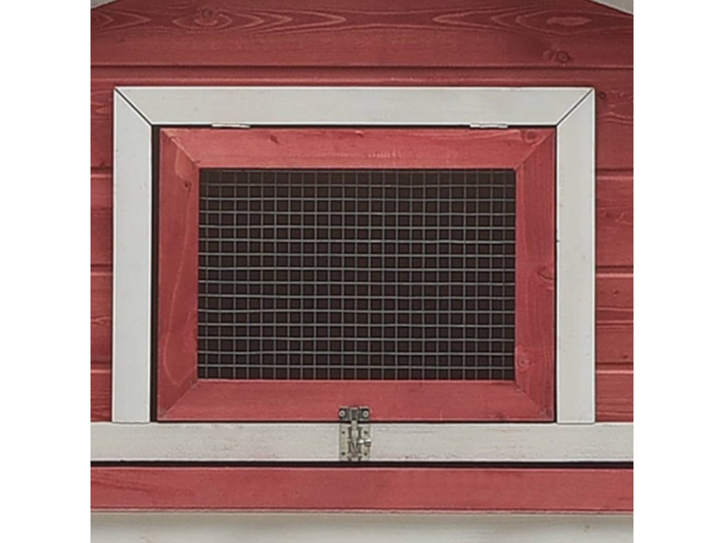 Králíkárna poskytne vašim zvířátkům spoustu místa k pohybu, zatímco husté pletivo z železných drátů zabrání neplechám a nečekaným nehodám. Mřížka vám navíc umožní mazlíčky neustále sledovat a zajistí volné proudění čerstvého vzduchu uvnitř klece. Králíkárnu tvoří vysoce kvalitní dřevěný rám, je proto pevná, bezpečná a vydrží dlouhá léta používání. Zelená střecha chrání obyvatele před deštěm. V útulném domečku se vaši králíci krásně vyspí. Ze spodního do horního patra vede rampa, po níž mohou zvířata snadno vyšplhat nahoru. Výsuvné dno klece usnadňuje její čištění. Dvířka lze jednoduše zavřít a zajistit zasouvacími západkami.