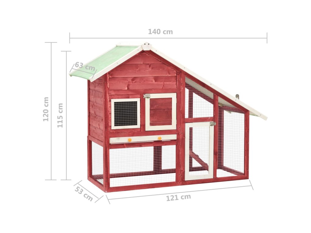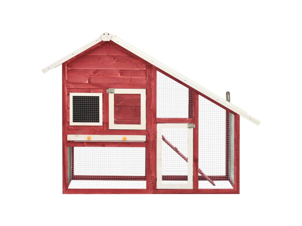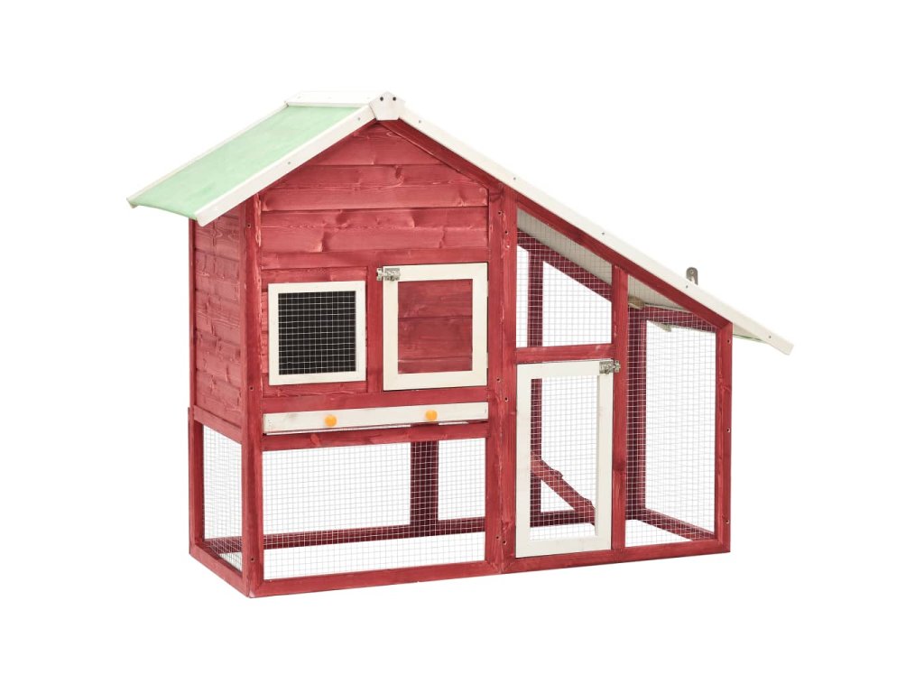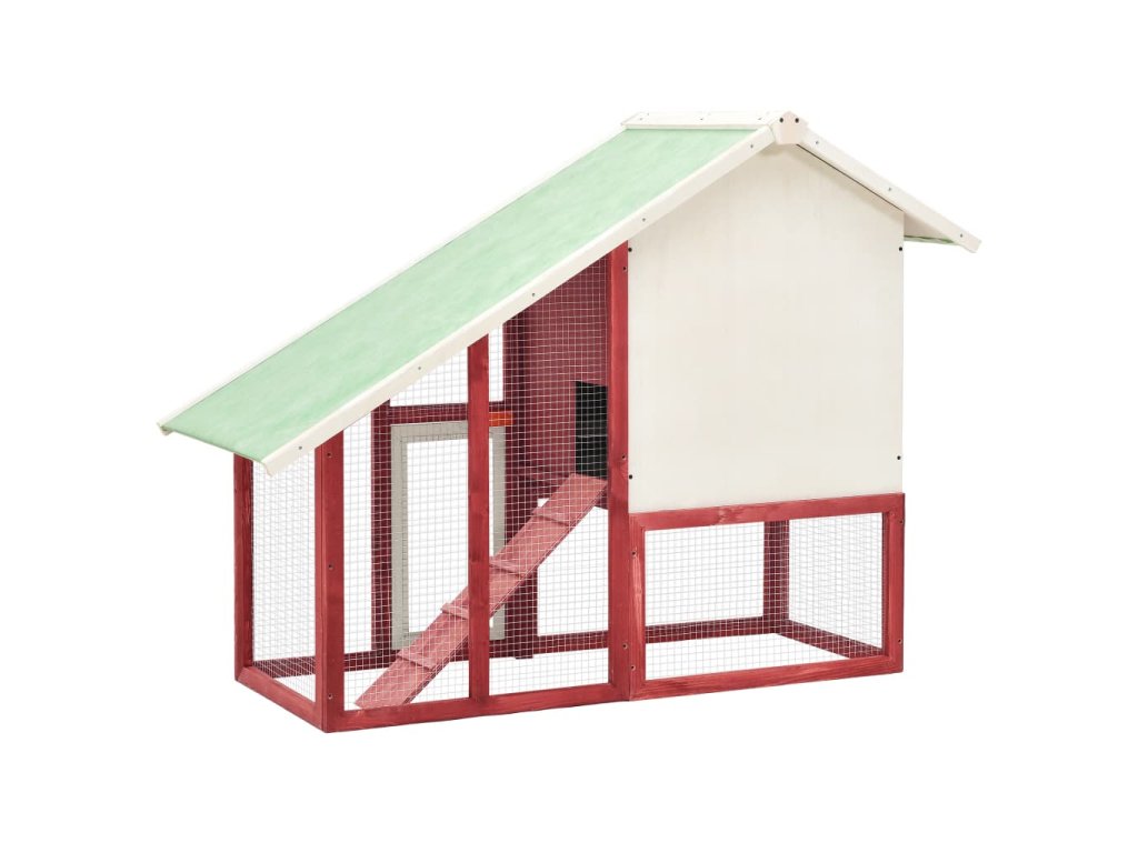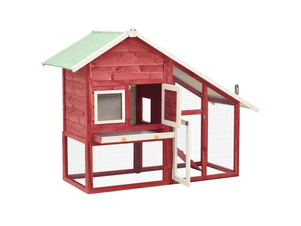 Králíkárna červená a bílá 140x63x120 cm masivní jedlové dřevo 170871