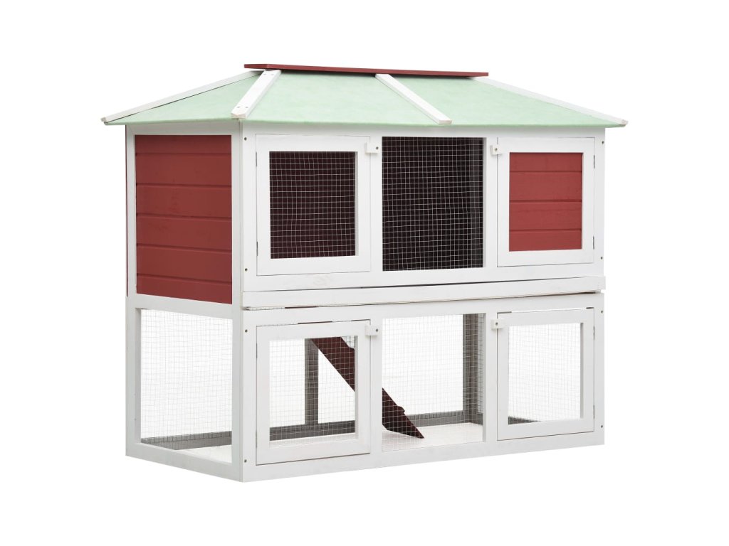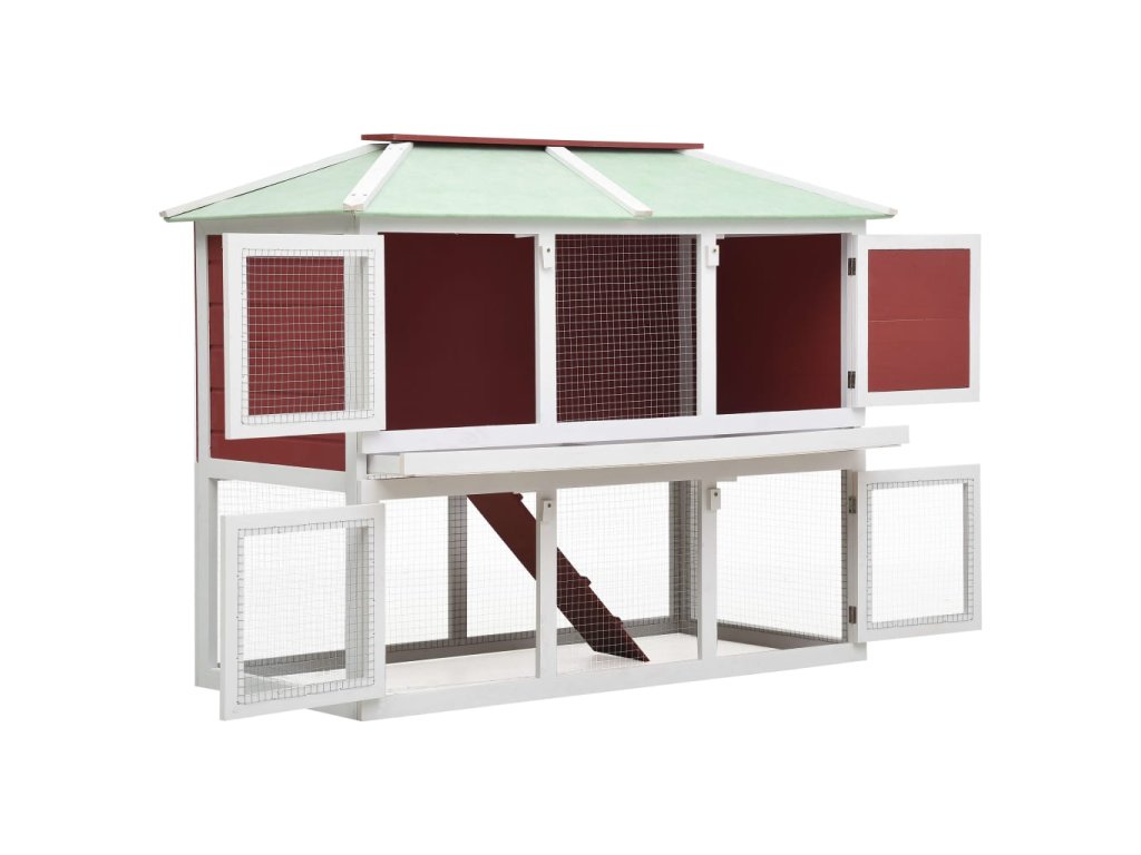 Tato vysoce kvalitní dvoupatrová králíkárna poskytne vašim roztomilým králíčkům a kuřatům útulné útočiště. Využijete ji k mnoha účelům: na hraní, pro zdravý pohyb a chov.