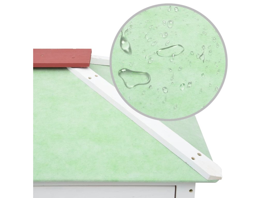 Tato králíkárna má rám z borového dřeva, které vám vydrží po celá léta. Její zelená střecha chrání zvířata před deštěm a útulná kóje je perfektním místem na spaní. Z přízemí do patra vede žebřík, po kterém se dá snadno vylézt. Díky vytahovacímu dnu je čištění snadné. Dvířka se snadno zavírají. Tato dřevěná klec na králíky je perfektní pro malá zvířata.